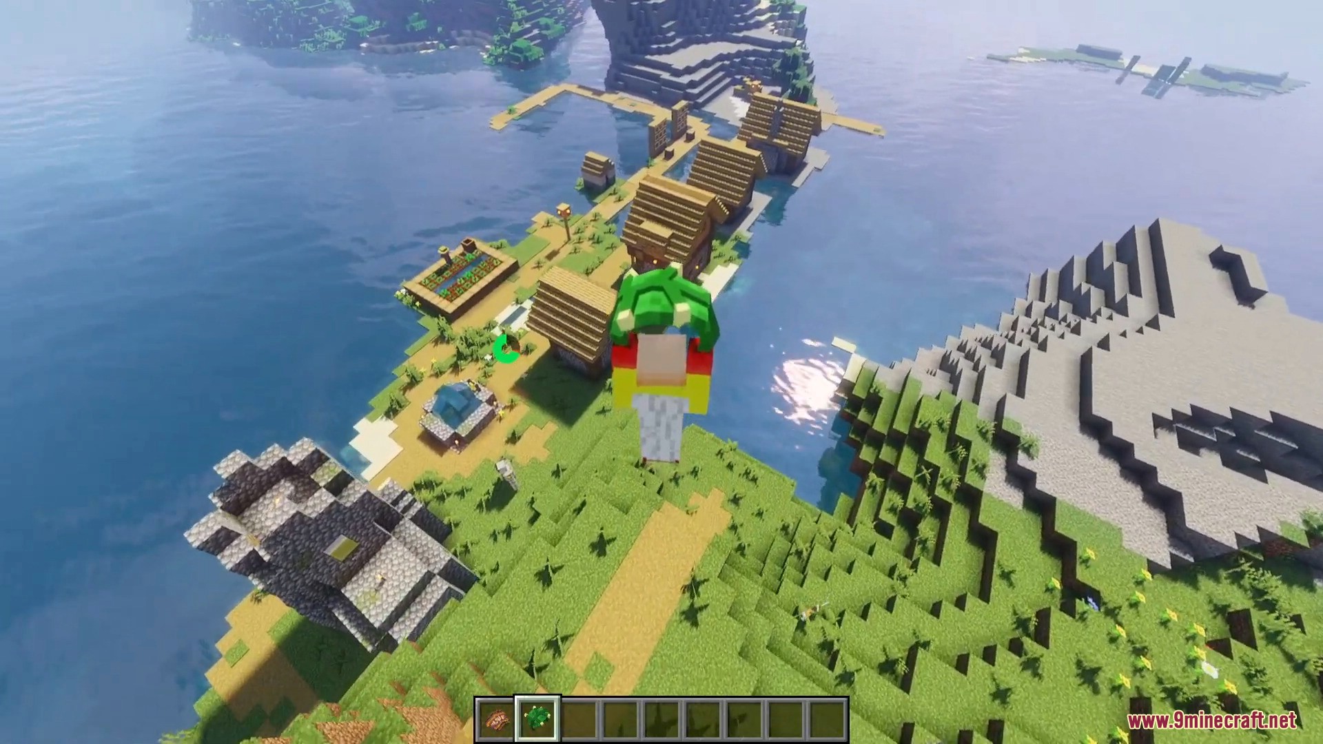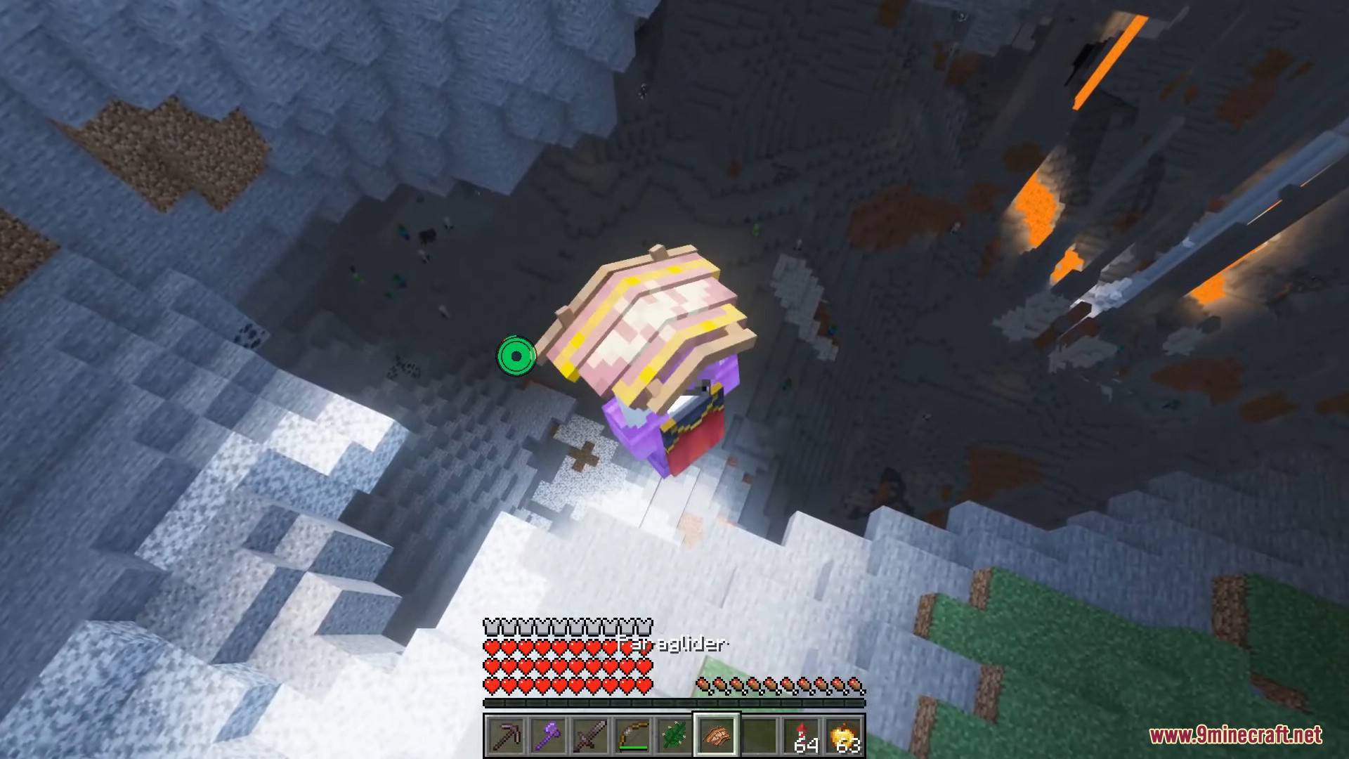 Paragliders Mod (1.21.5, 1.20.1) brings Paraglider which is an item in the game called LoZ: BotW. The Paraglider can be crafted by using some leathers and sticks. While the Paraglider is on your hand, it will reduce your falling speed and negates fall damage. And you can glide over the land just like BotW. Note that Paraglider will not work on off-hand slot.