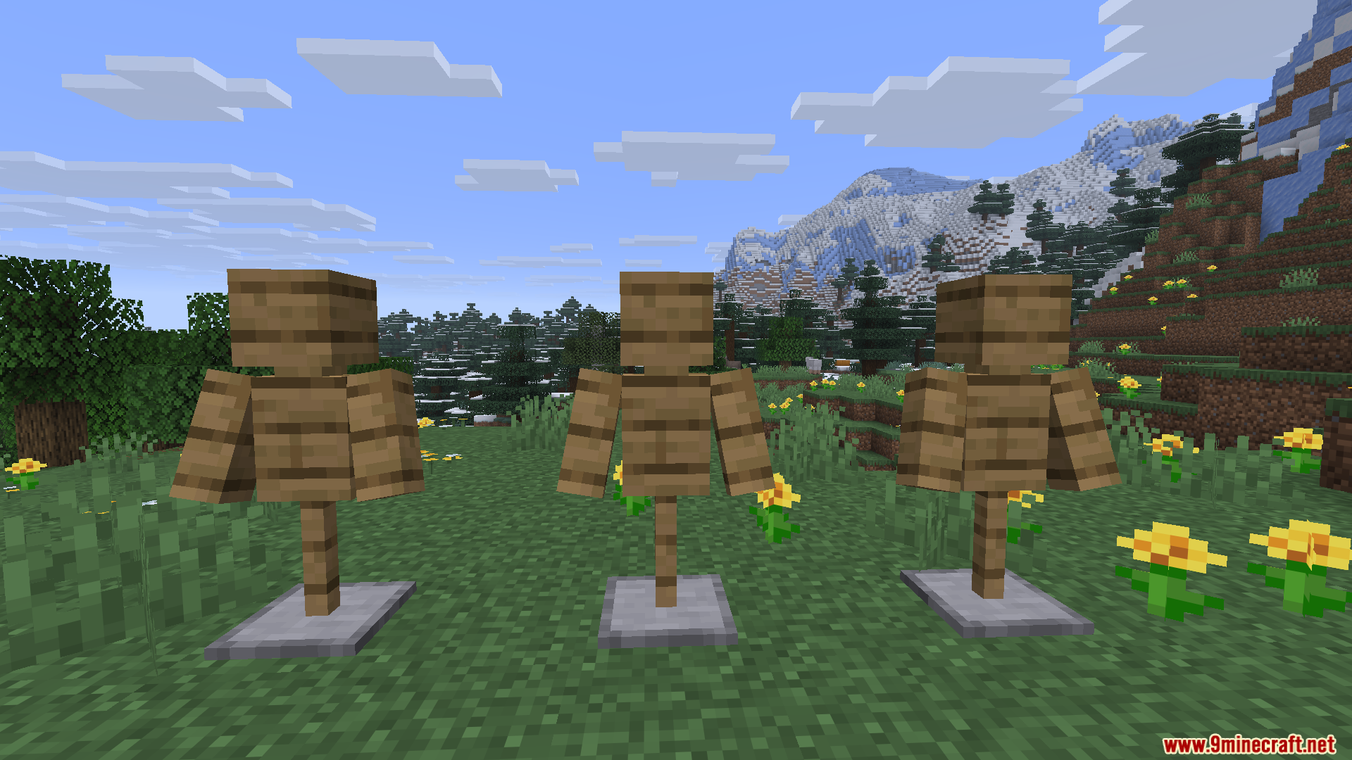 PDB3Ds Blocky Armor Stands Resource Pack (1.21.11, 1.20.1) replaces the default armor stand model with a chunkier, blockier version.