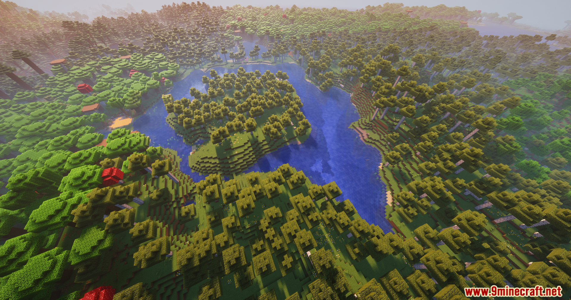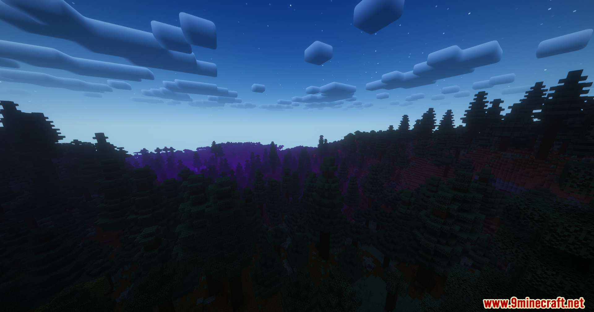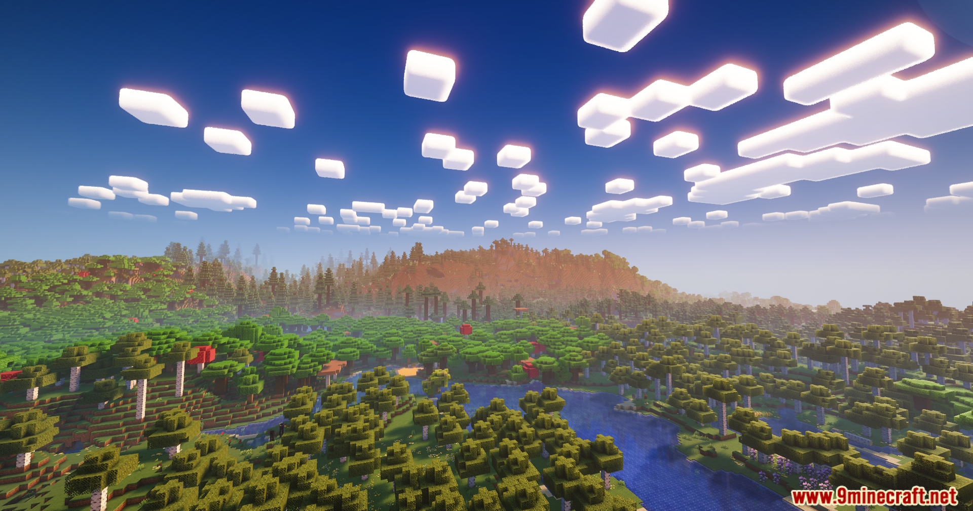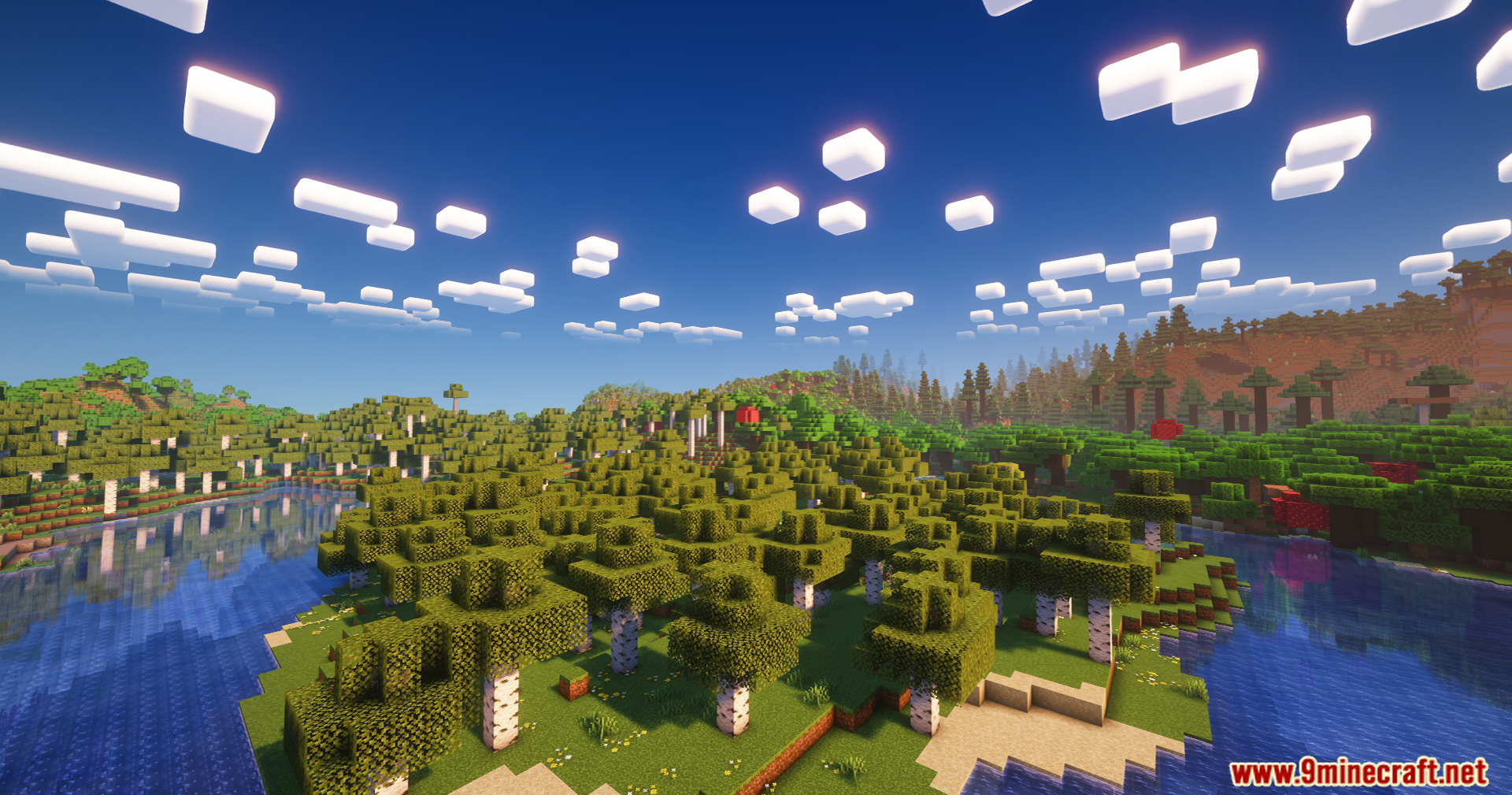 Pine Shaders (1.21.11, 1.20.1) focuses on soft lighting, gentle shadows, and green-tinted color grading to create a peaceful and realistic atmosphere. It enhances natural elements such as sunlight, foliage, and clouds without pushing toward heavy realism or dramatic effects.