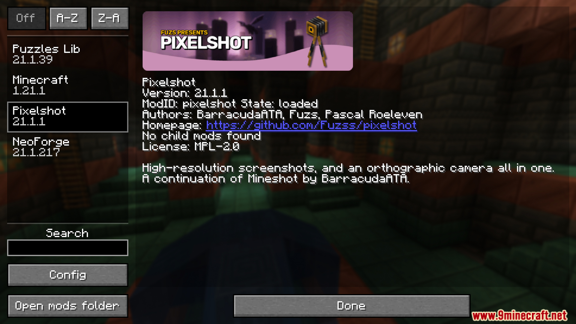 Pixelshot Mod (1.21.11, 1.21.1) Download Links