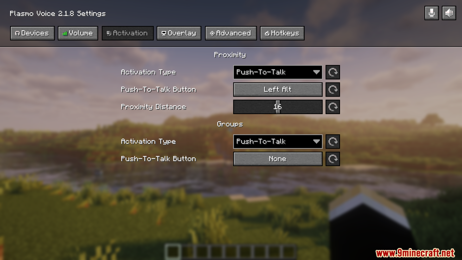 - Open Plasmo Voice menu V (by default), go to the Activation tab and configure the Groups activation.