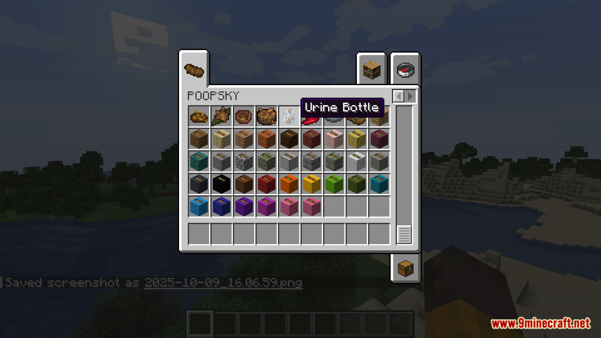 PoopSky Mod (1.21.1, 1.21) is a Minecraft mod that brings “pooping” functionality, with humorous mechanics involving poop and pee. The mod does not include Skyblock.