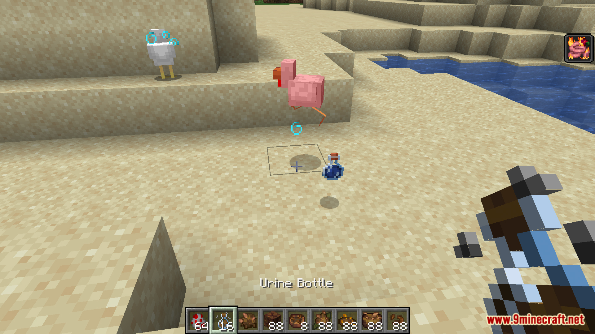 - Urine: Obtained by right-clicking the toilet with the glass bottle; give it to a chicken to drink to receive a water bottle.