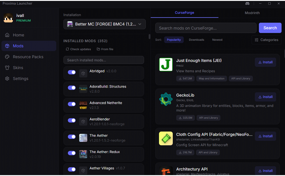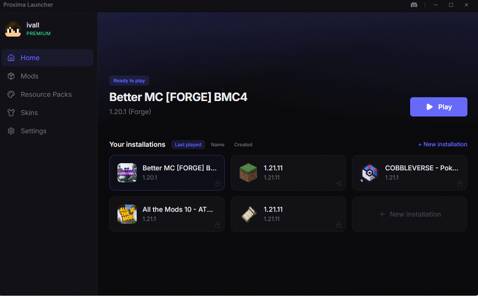 Proxima Launcher (1.21.11, 1.20.1) – Free Minecraft Launcher