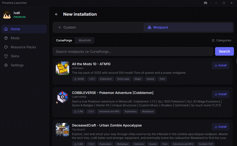 Proxima Launcher (1.21.11, 1.20.1) is a free Minecraft launcher designed to make managing Minecraft installations simple and fast. It allows players to easily install mods and modpacks from CurseForge and Modrinth, manage multiple separate game profiles, and use custom skins even without owning a official Microsoft account. The launcher focuses on automation and convenience. Java installs automatically when needed, and the launcher itself takes less than 30 MB of disk space. Players can securely log in using a Microsoft account or start playing instantly using an offline account.