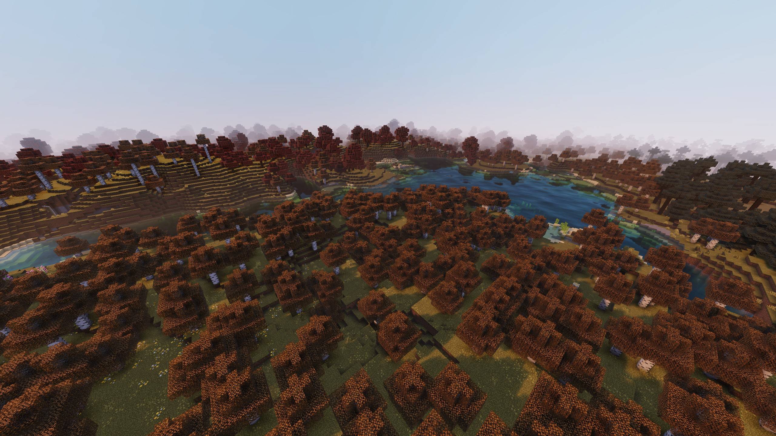 Pumpkin Spice Shaders (1.21) is designed with an autumn theme with warm orange tones and thick fog.