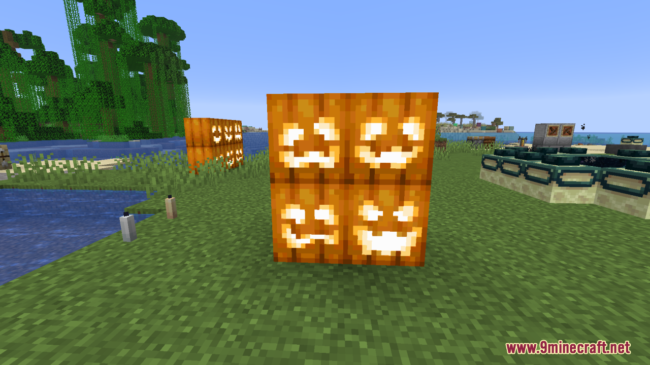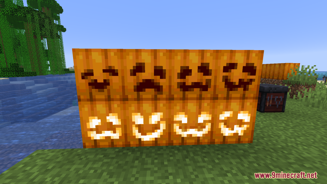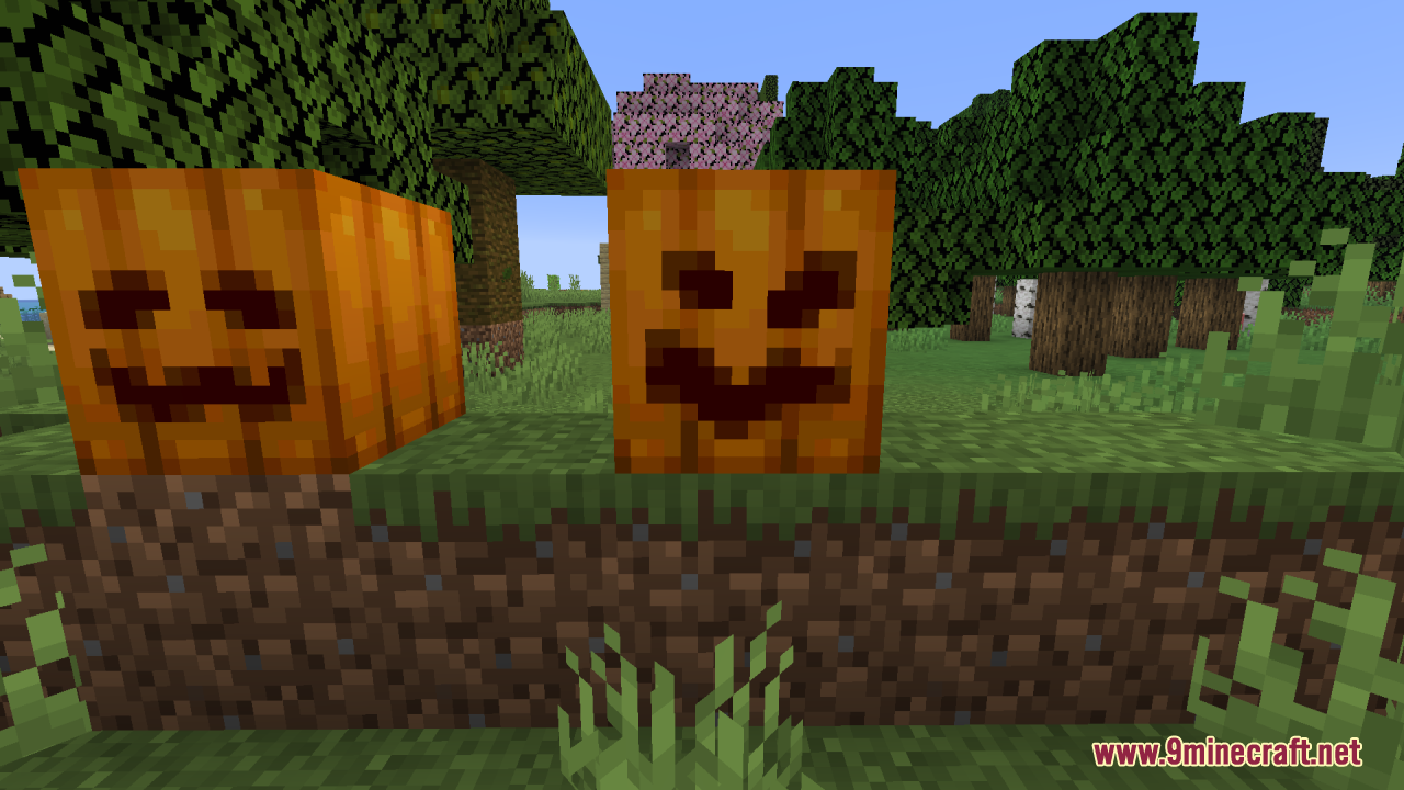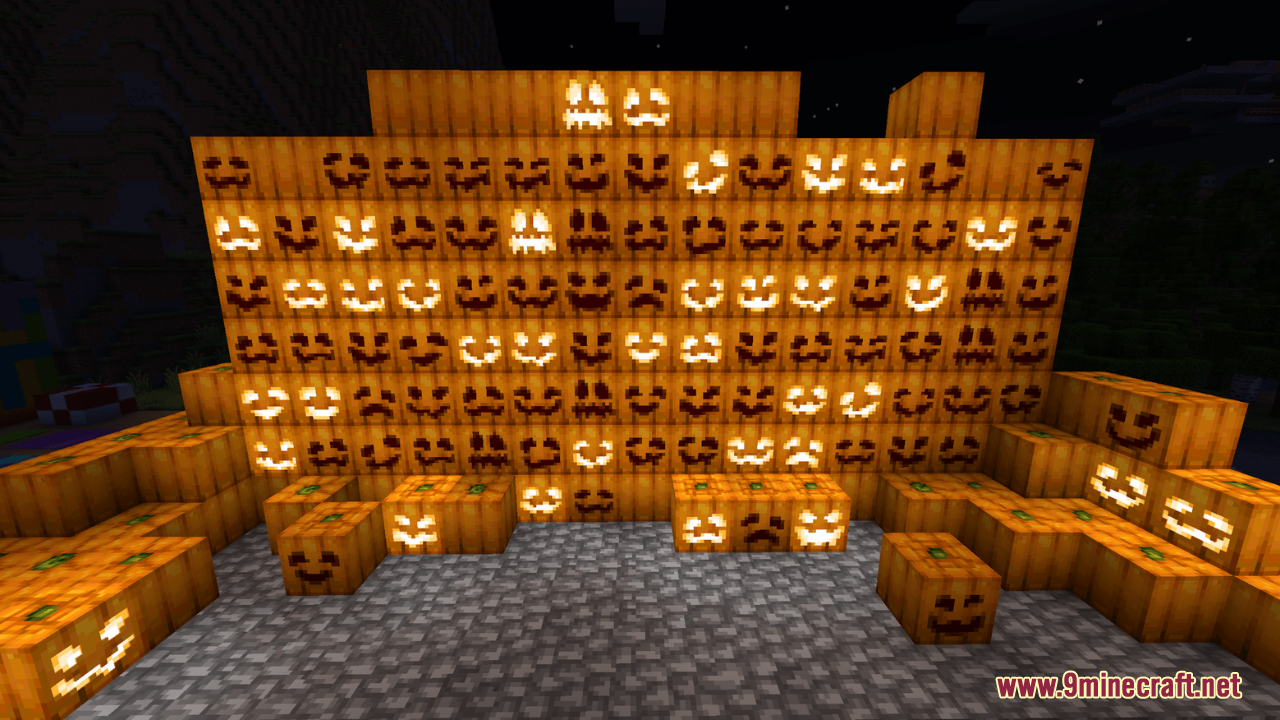 Pumpkins Reimagined Resource Pack (1.21.10, 1.20.1) gives Minecraft’s pumpkins—both carved pumpkins and jack-o’-lanterns – a full cosmetic overhaul by introducing 24 new variants with colorful, expressive faces and themed models, replacing the standard vanilla look. These variants support both placed blocks and mob-worn pumpkins (e.g., zombies or skeletons wearing different face designs), so the pack adds more personality to decorative builds and mob aesthetics alike. You’ll find it especially useful for themed builds – like Halloween, autumn cottages, or whimsical farms – where you want pumpkins to be both decorative and visually distinct.