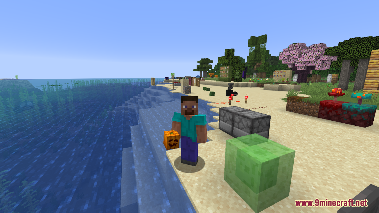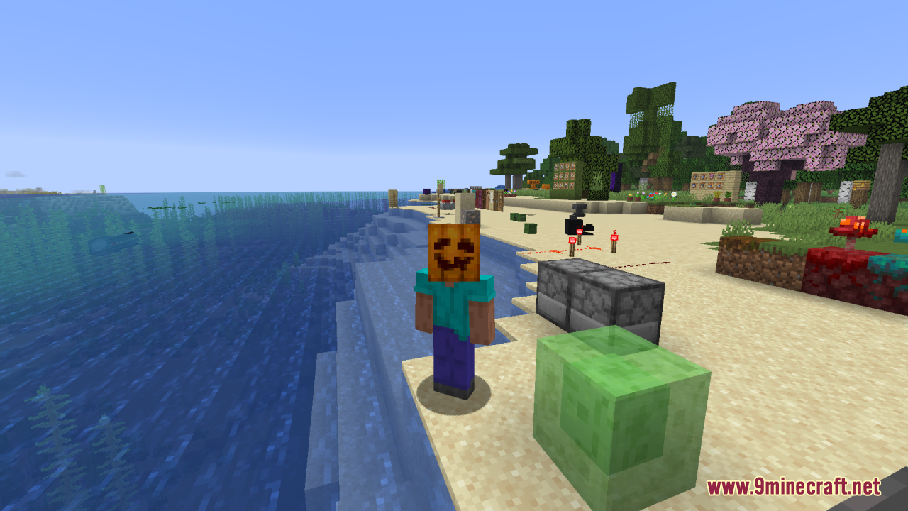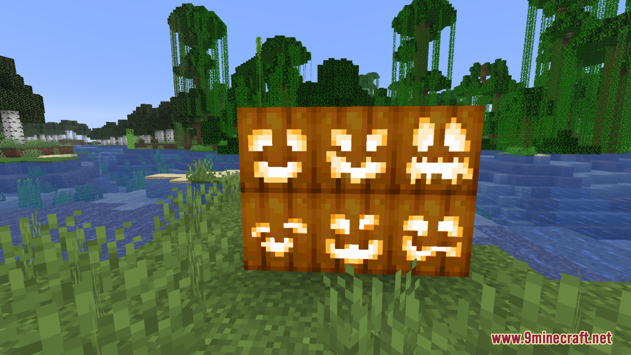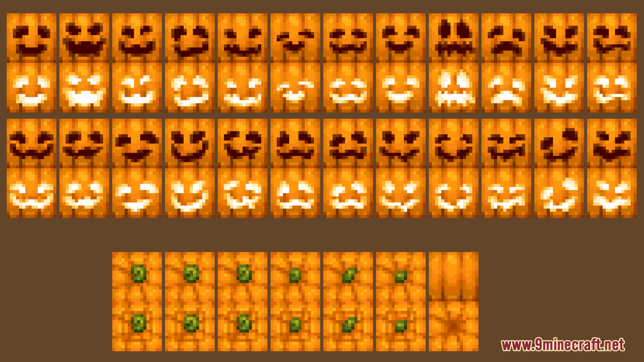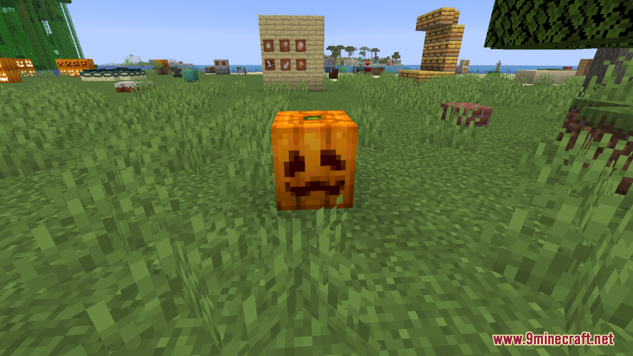 Pumpkins Reimagined Resource Pack (1.21.10, 1.20.1) gives Minecraft’s pumpkins—both carved pumpkins and jack-o’-lanterns – a full cosmetic overhaul by introducing 24 new variants with colorful, expressive faces and themed models, replacing the standard vanilla look. These variants support both placed blocks and mob-worn pumpkins (e.g., zombies or skeletons wearing different face designs), so the pack adds more personality to decorative builds and mob aesthetics alike. You’ll find it especially useful for themed builds – like Halloween, autumn cottages, or whimsical farms – where you want pumpkins to be both decorative and visually distinct.