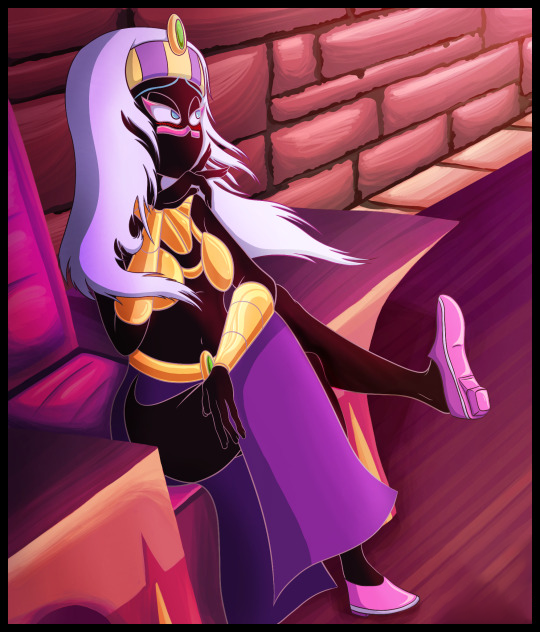 Queen Tyr’ahnee For Ellie Jenny Mod Model is a fan-made reskin inspired by Queen Tyr’ahnee, the seductive Martian ruler from Duck Dodgers (2003-2005 Looney Tunes spin-off). It features Tyr’ahnee’s regal extraterrestrial design, characterized by ebony skin, long white hair, glowing purple eyes, and bold black eye makeup, as well as an ornate gold Egyptian-style headdress and jewelry, including nipple pasties and a hip belt, all set against a flowing purple skirt.