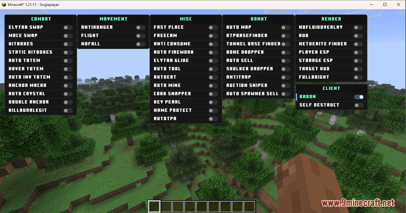 Radon Client Mod (1.21.11) – Donut’s Most OP, Fork of Krypton Client