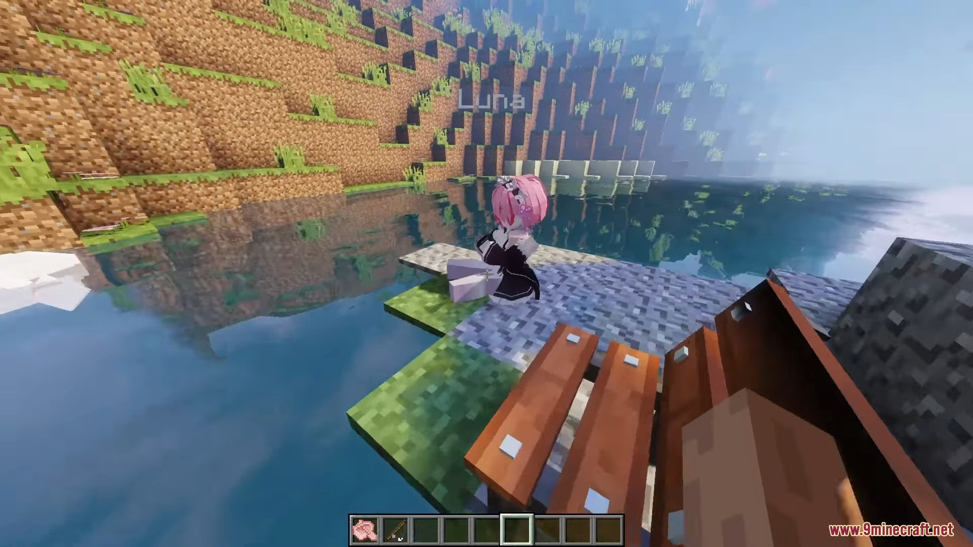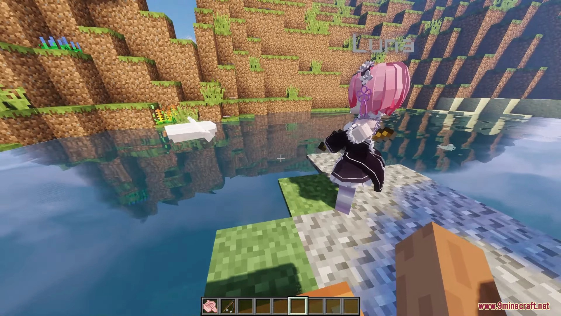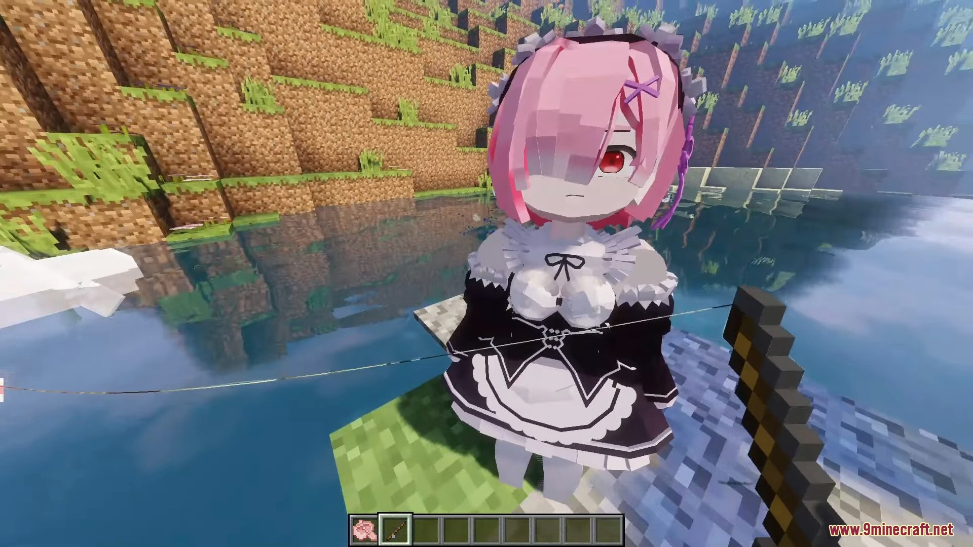 Ram Momo is a character model designed to replace Momo in the PleasureCraft Mod, featuring a distinctive and easily recognizable anime chibi style. Inspired by a fantasy maid design, the model has a signature pink bob haircut that covers one eye, striking red eyes, and delicate hair accessories.