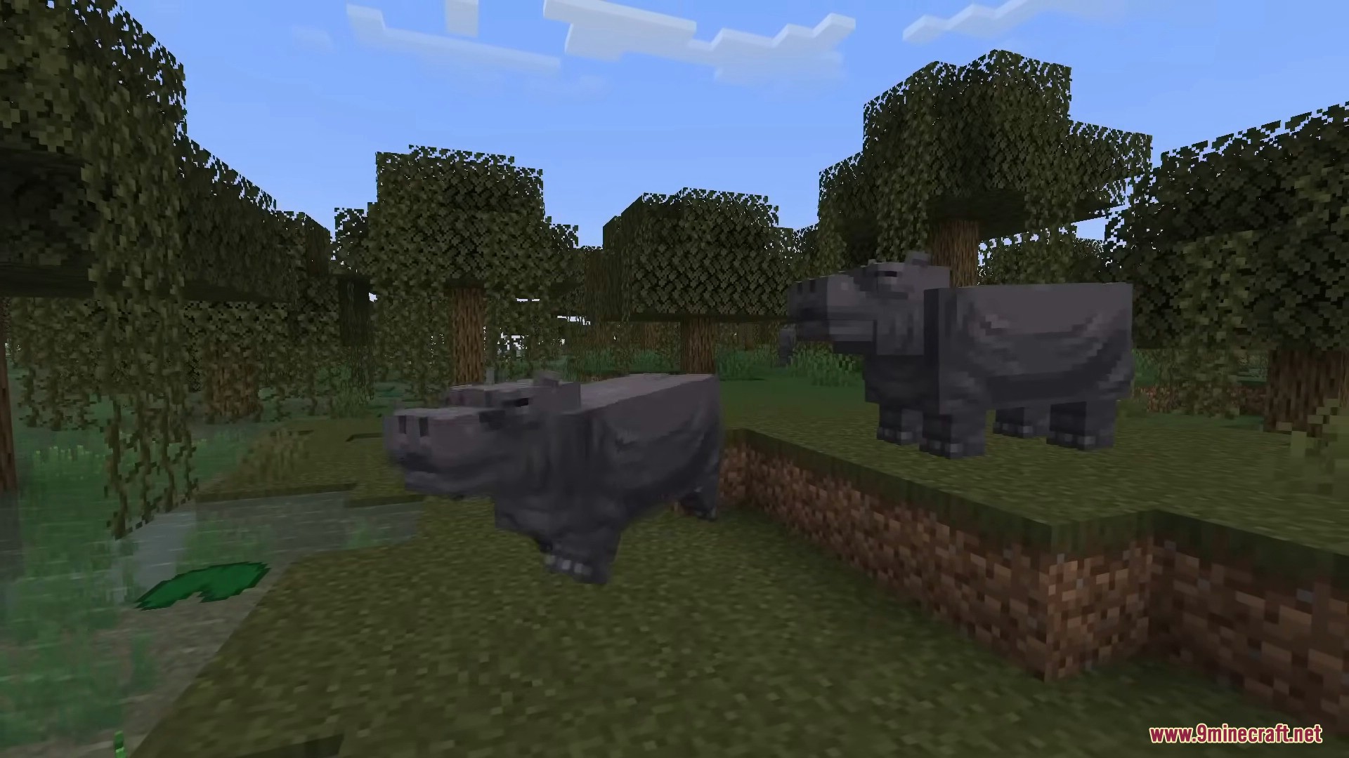 - Hippopotamus – large semi-aquatic animal that rests on land or in water