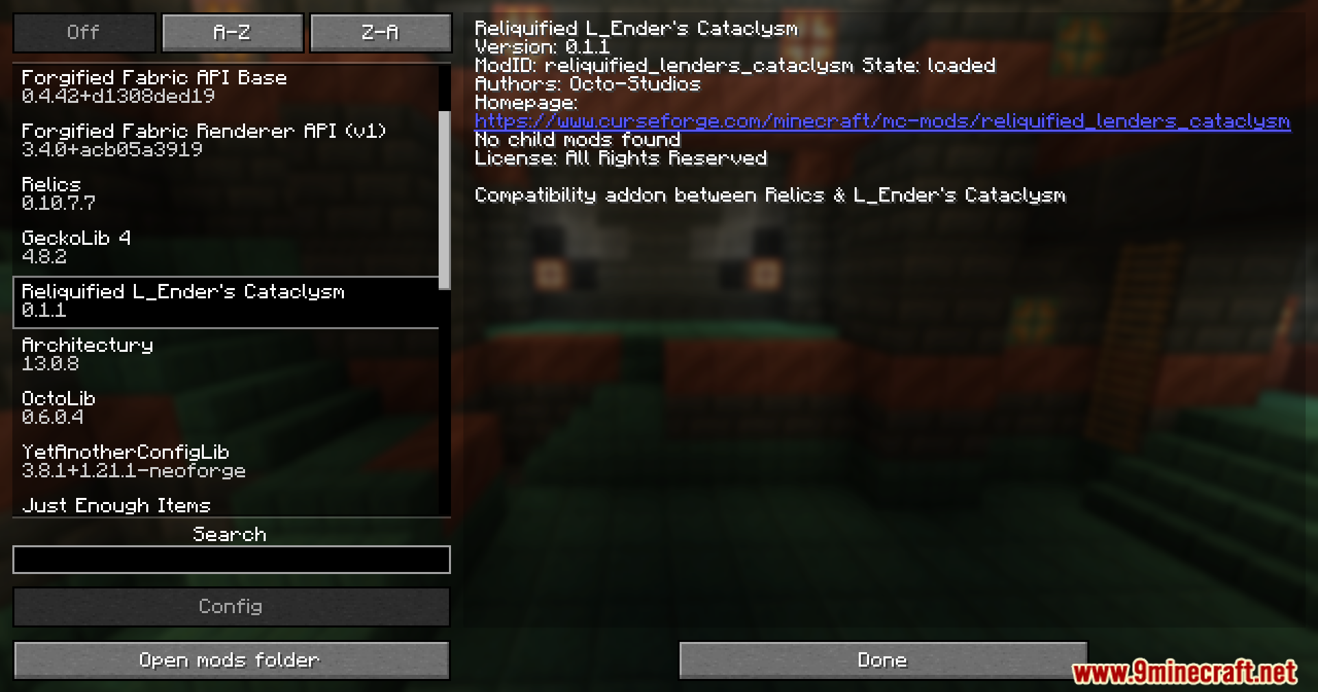 - Acts as an addon bridging Relics and L_Ender’s Cataclysm