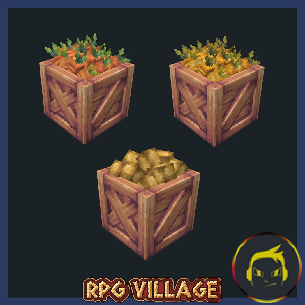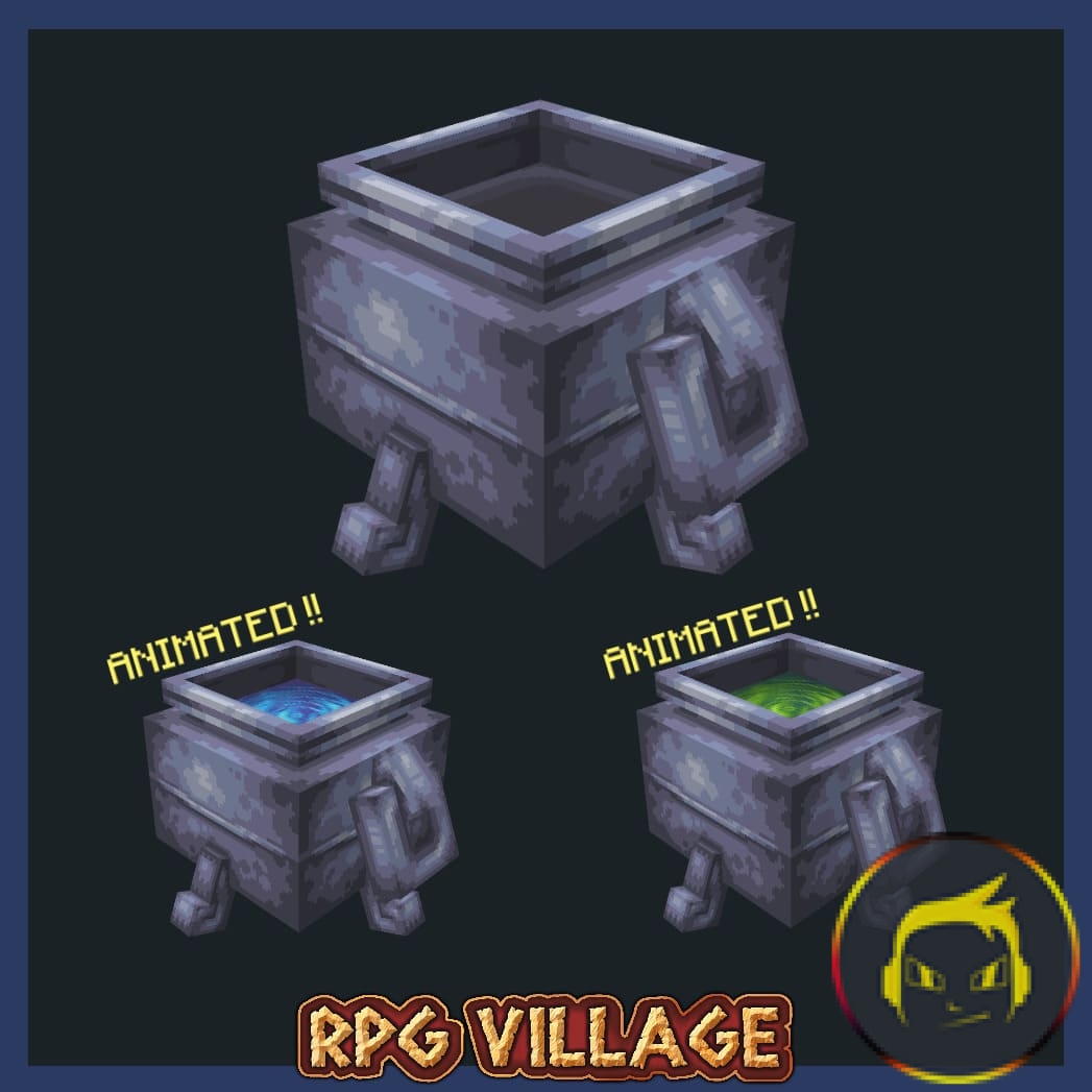 RPG Village Pack 1 Model contains over 40 unique Minecraft models and over 150 generic Minecraft models to easily add flair to your Minecraft villages! Thanks to the modularity of custom blocks and the use of invisible element frames, you can bring life to your village like never before with props like cauldrons, carts, and a wide variety of food crates and options!