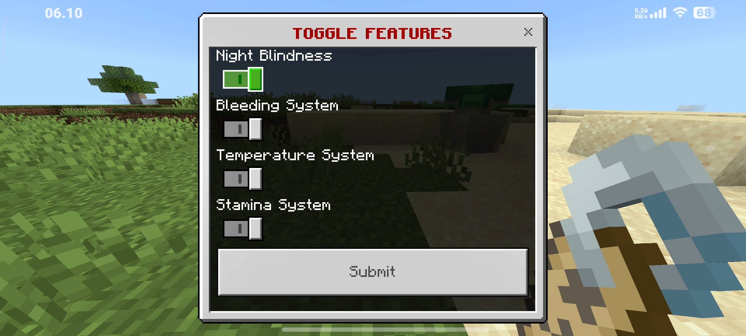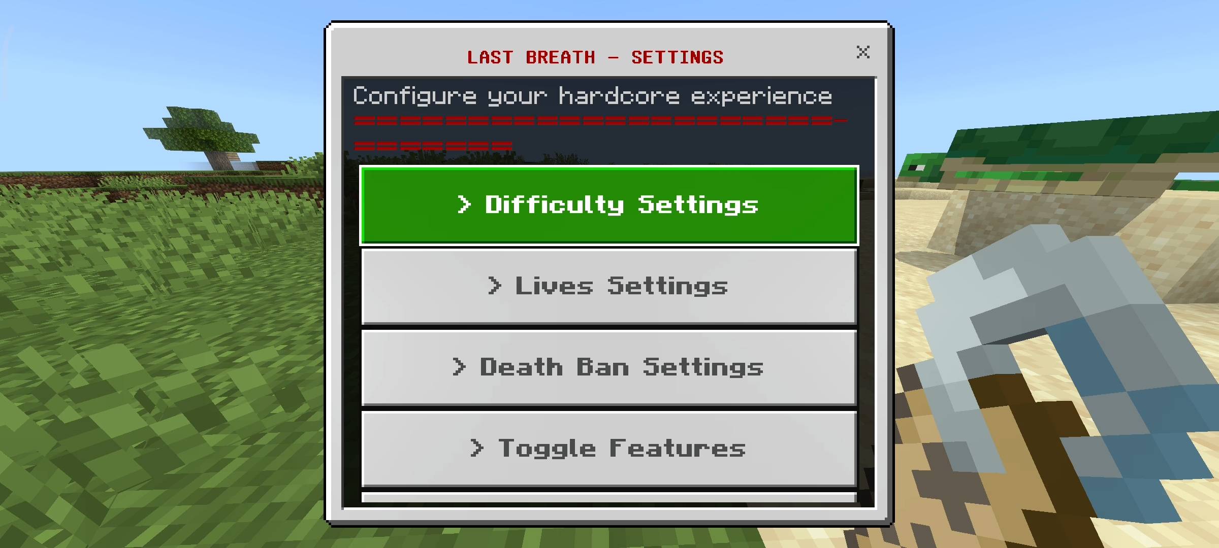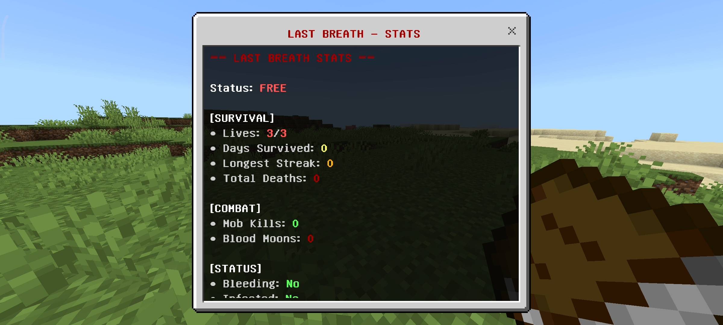 RR Last Breath Addon (1.21) changes the way survival works by adding medical elements and death penalties. Mechanisms like bleeding and zombie infection make maintaining a stable health level difficult. When injured, players need to stop and sit down to bandage, or use milk to detoxify after being bitten. The system limits lives to 3, and if all lives are used, the character will enter a 10-minute waiting state where they cannot move or perform actions.