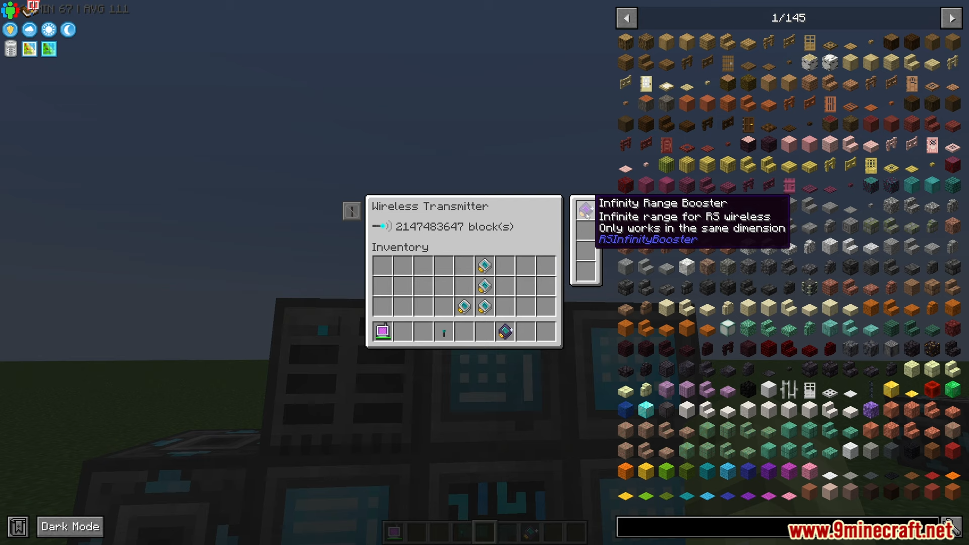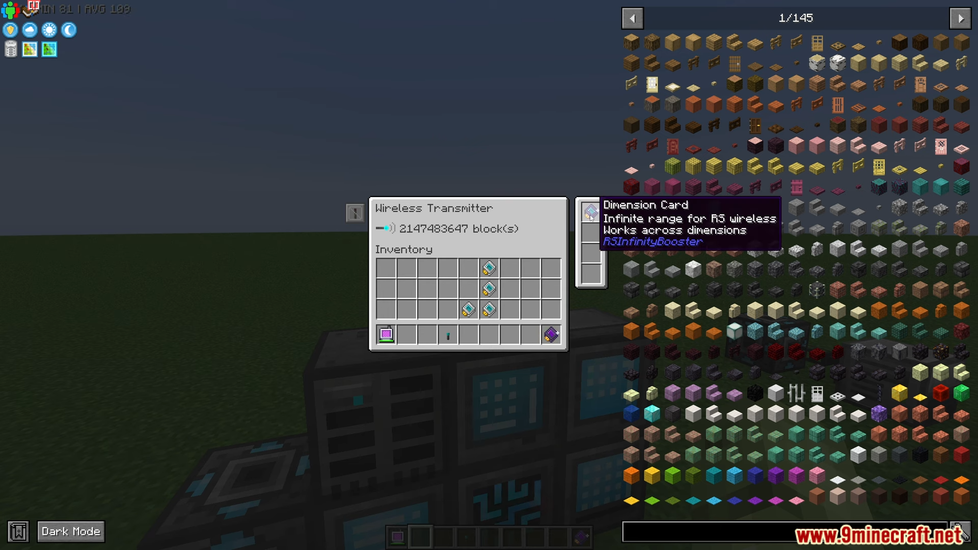 RSInfinityBooster Mod (1.21.1, 1.20.1) adds Infinite Range Card and Dimension Card to Refined Storage.
