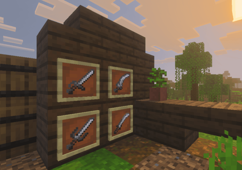 Runes and Steel Addon (1.21) adds 16 historically inspired weapons. The system includes various swords, knives, and axes with active or passive abilities. Players use these items to create effects such as high jumps, increased speed, or armor-piercing.