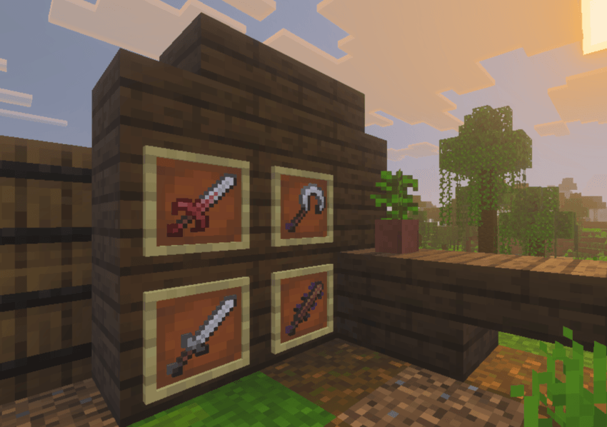 Runes and Steel Addon (1.21) adds 16 historically inspired weapons. The system includes various swords, knives, and axes with active or passive abilities. Players use these items to create effects such as high jumps, increased speed, or armor-piercing.