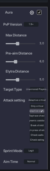 - Combat: Aura, Auto Armor, Auto Gapple, Auto Potion, AutoTotem, Auto Web, AutoTrap, AutoAnchor, BackTrack, Bind Swap.