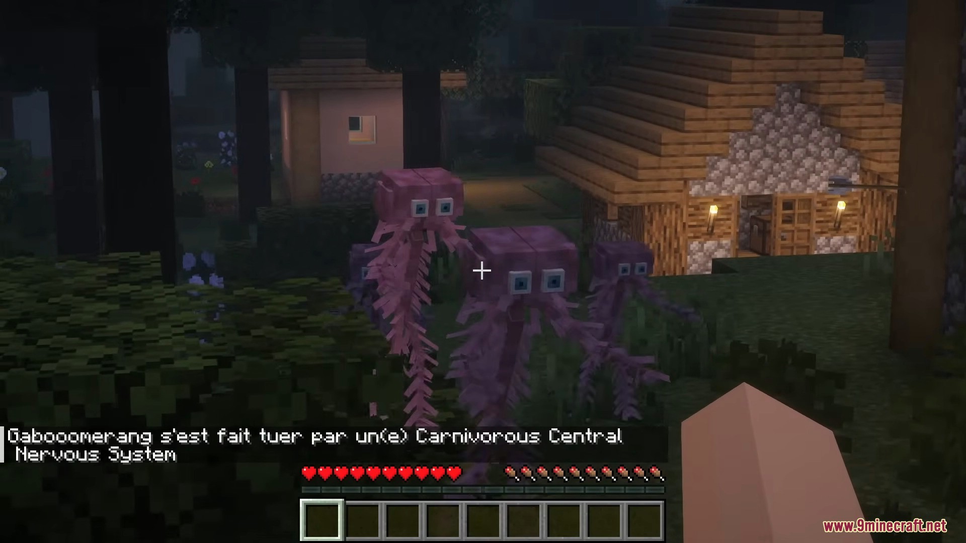 SCP-1027 Carnivorous Central Nervous System Mod (1.20.1, 1.19.2) adds a highly dangerous SCP-inspired hostile entity that hunts living targets and can control certain undead mobs. It is designed as a fast, spreading nighttime threat.