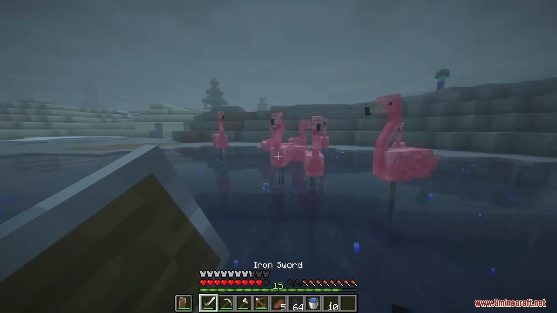SCP-1507 Pink Flamingos Mod (1.20.1, 1.19.2) adds a deceptive hostile mob inspired by the SCP universe. These creatures look like harmless garden decorations, but become extremely dangerous when disturbed.