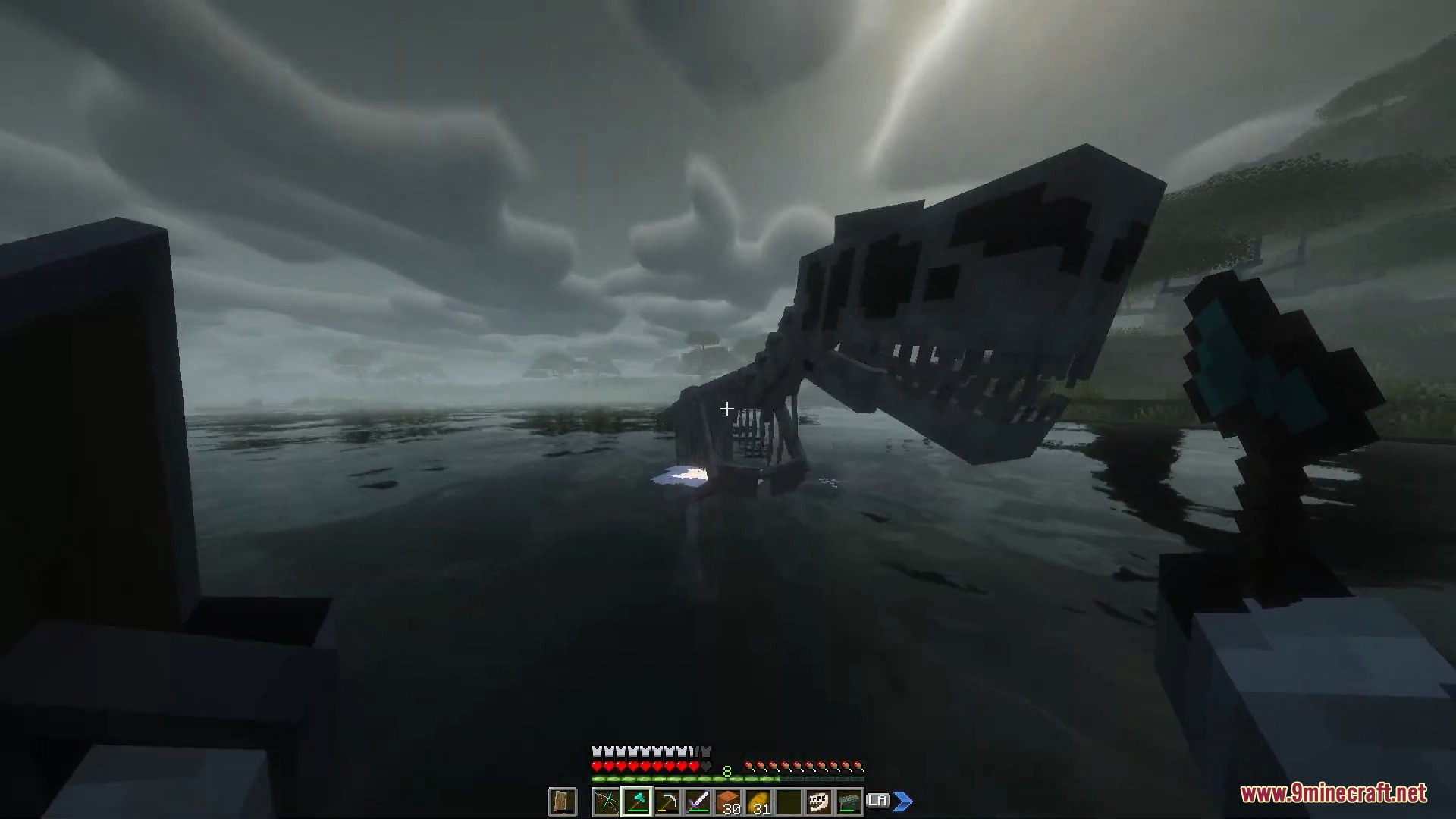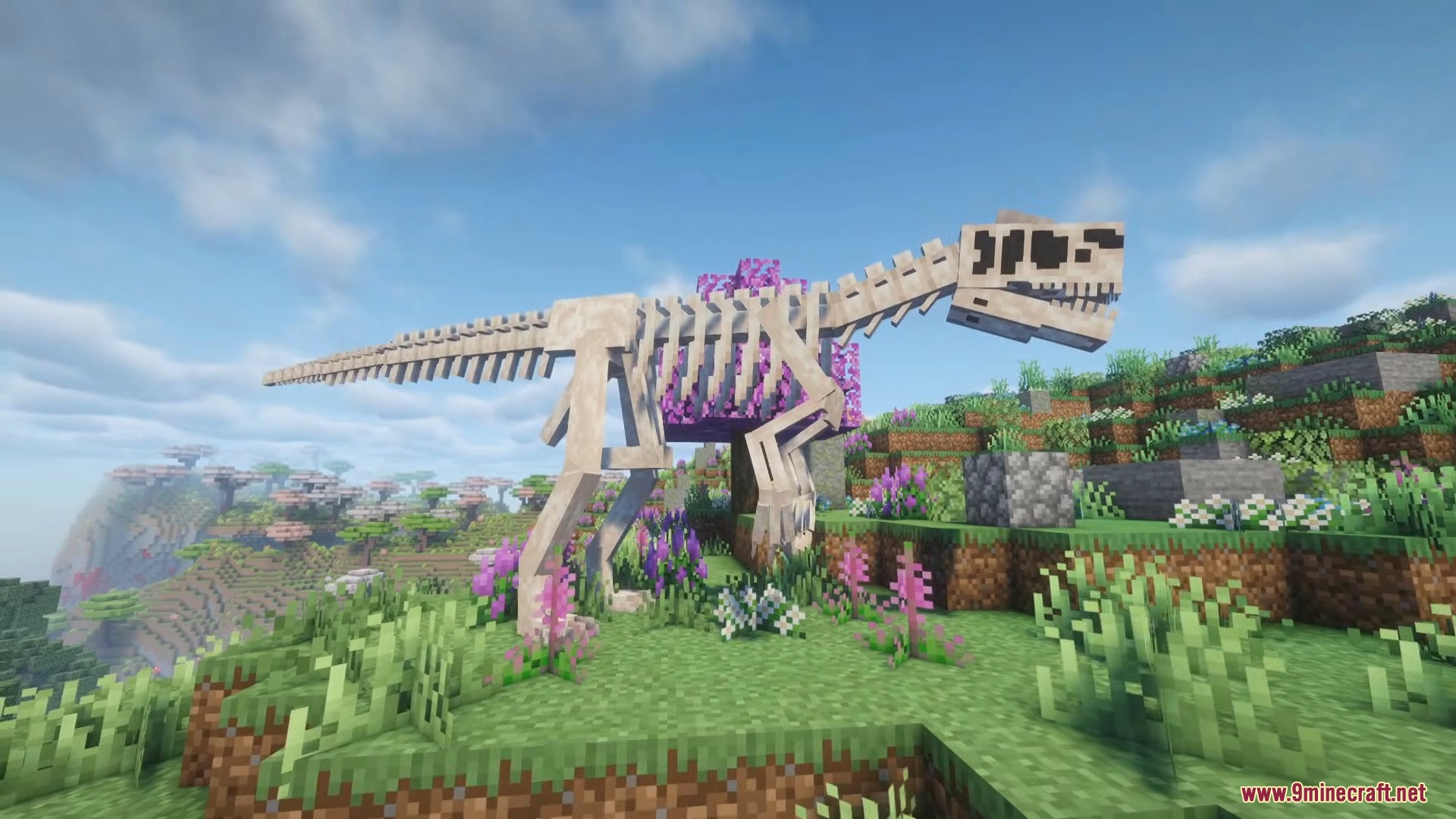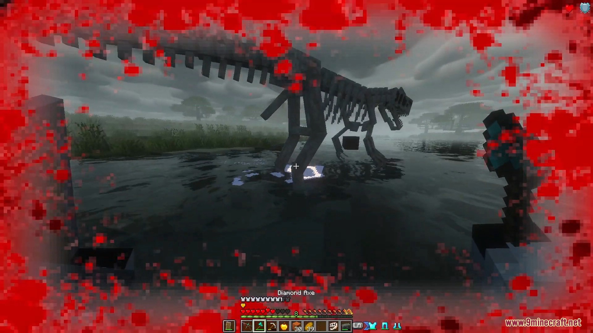 SCP-250 Most of an Allosaurus Mod (1.20.1, 1.19.2) adds a powerful skeletal dinosaur monster to the Overworld. It is highly aggressive, destructive, and difficult to defeat, making every encounter a serious threat for unprepared players.