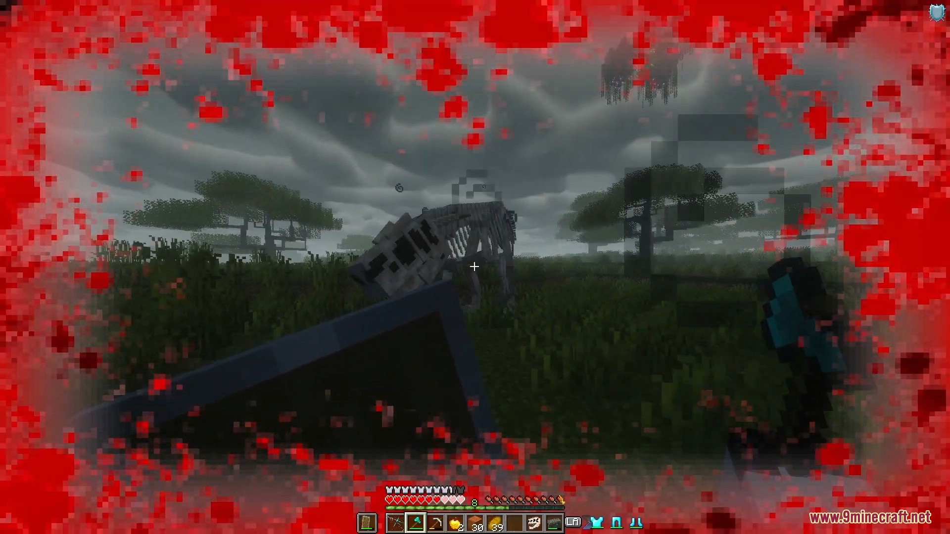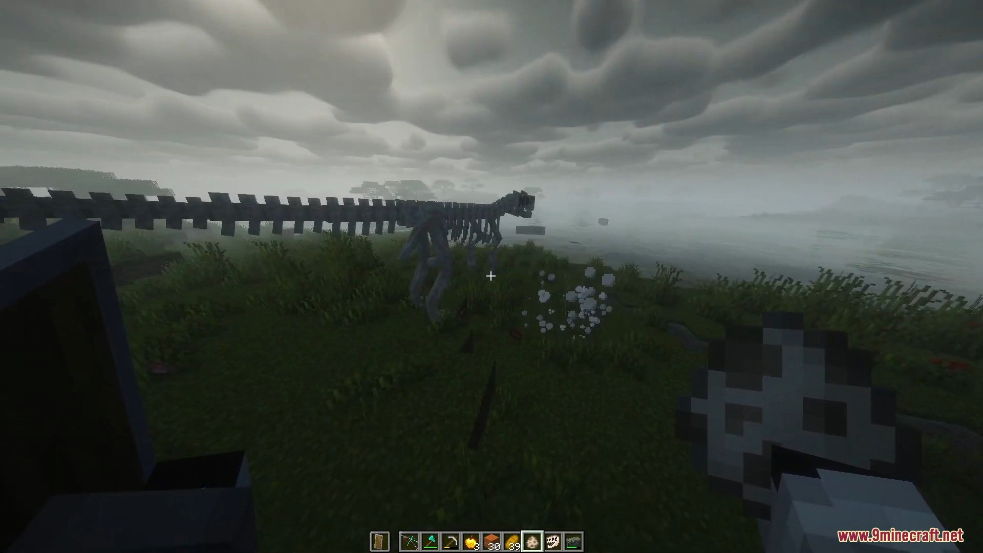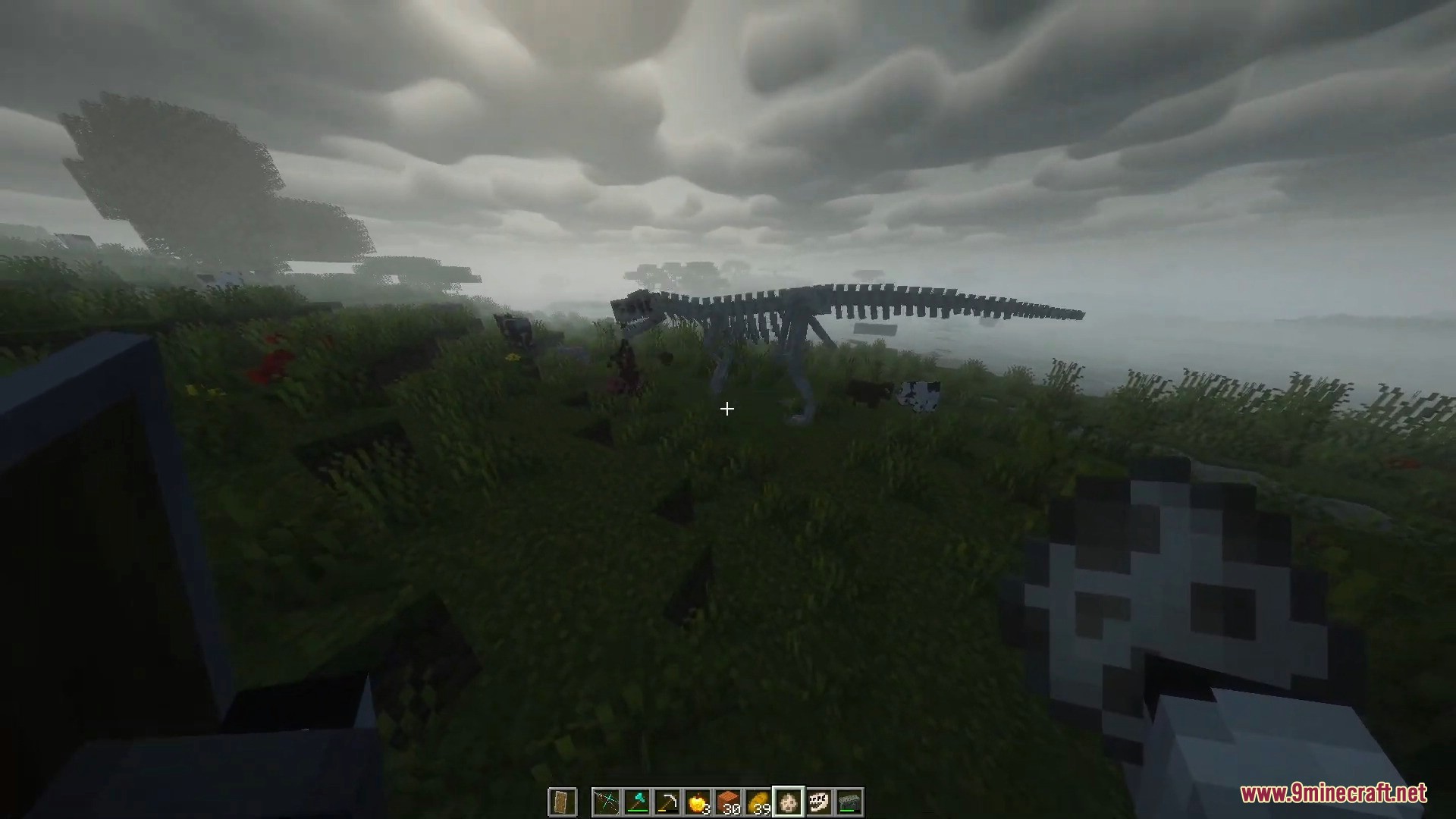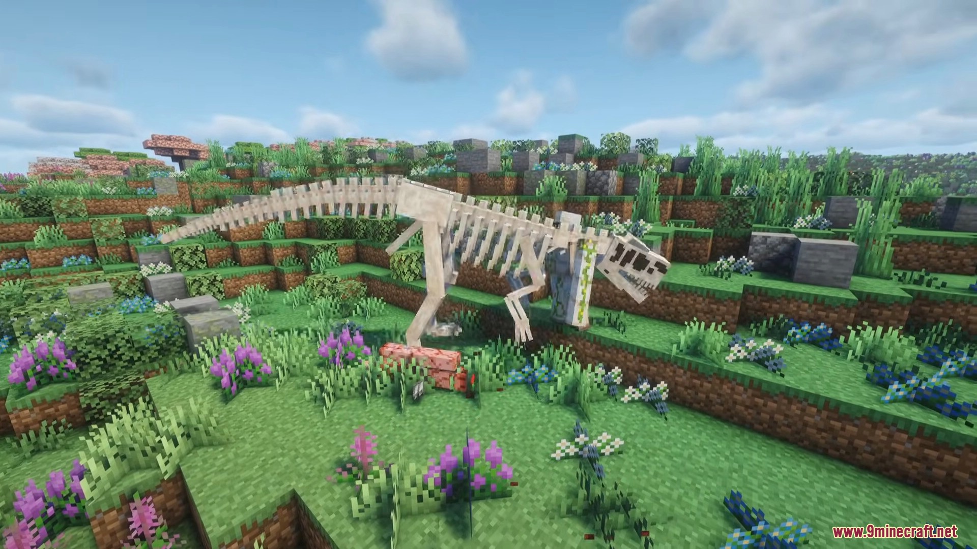 SCP-250 Most of an Allosaurus Mod (1.20.1, 1.19.2) adds a powerful skeletal dinosaur monster to the Overworld. It is highly aggressive, destructive, and difficult to defeat, making every encounter a serious threat for unprepared players.