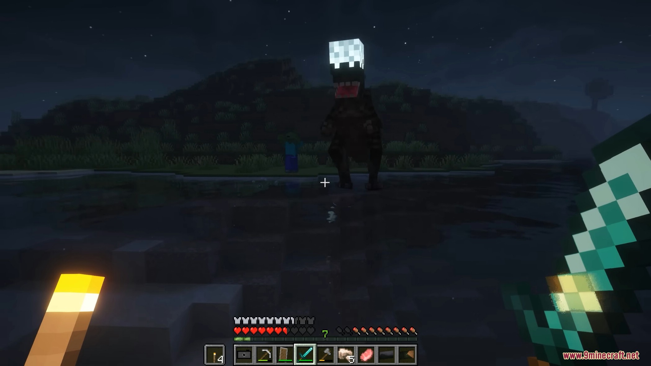 SCP-745 Headlights Mod (1.20.1, 1.19.2) adds a dangerous nighttime predator inspired by the SCP universe. These creatures are easy to recognize by the bright glowing lights on their heads and are designed to hunt players on the surface at night.