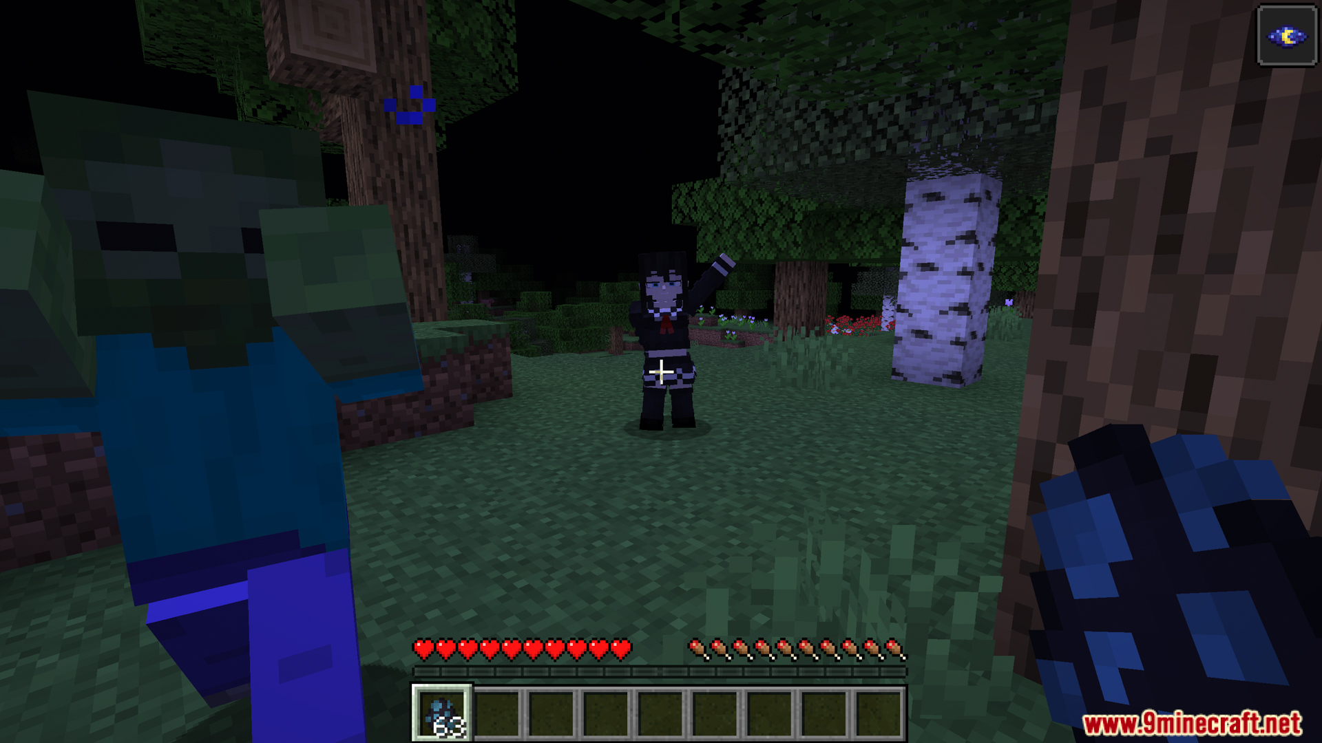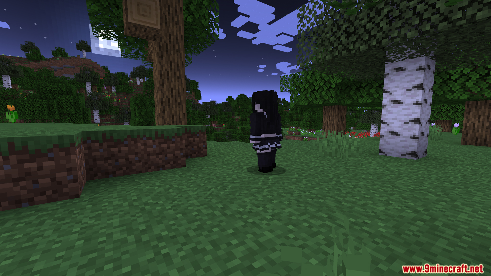 SCP 835 JP Mod (1.20.1, 1.19.2) adds SCP-835-JP, also known as Keteru Yamiko, a scary girl with black hair who hunts players who stay in the dark too long. She doesn’t appear right away – first you hear giggles, then you see shadows watching you, and finally she reveals herself with a knife. She is very fast, can teleport through dark areas, and becomes extremely dangerous once she starts chasing you. The only way to survive is to stay in bright areas with lots of light.