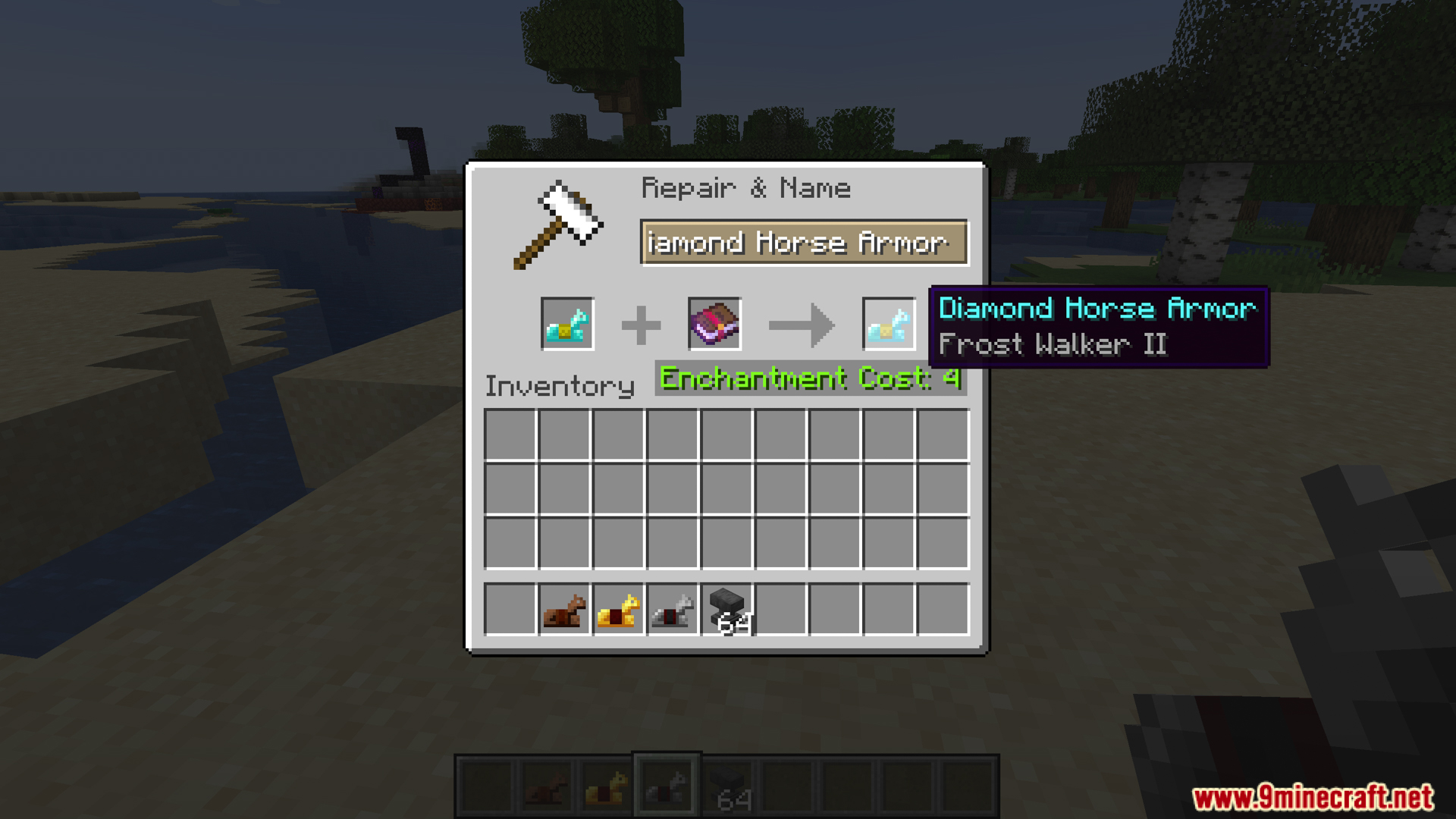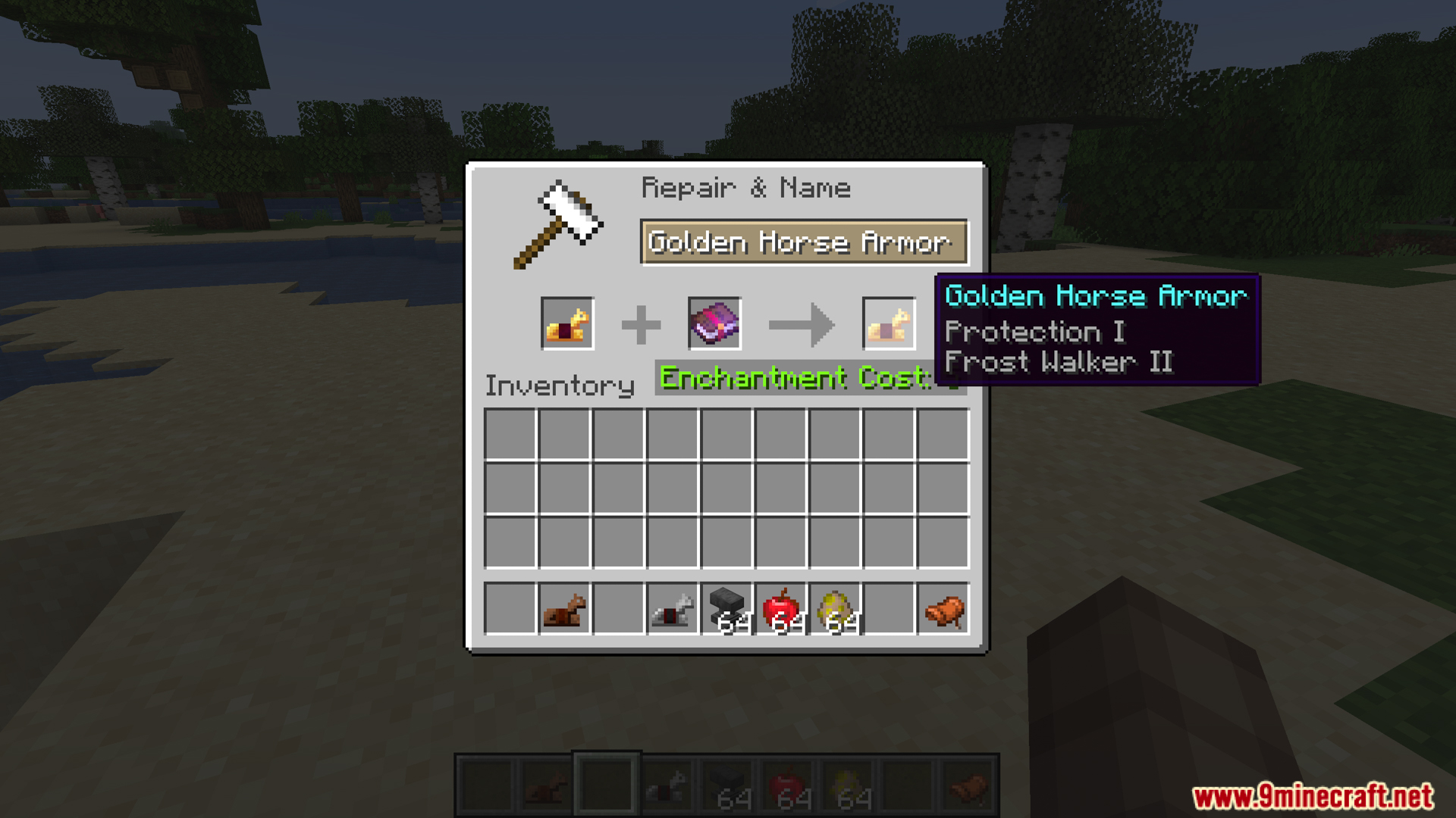 - Allows Horse Armor to be enchanted just like human items. Any enchantments for armor can be applied to horse armor.