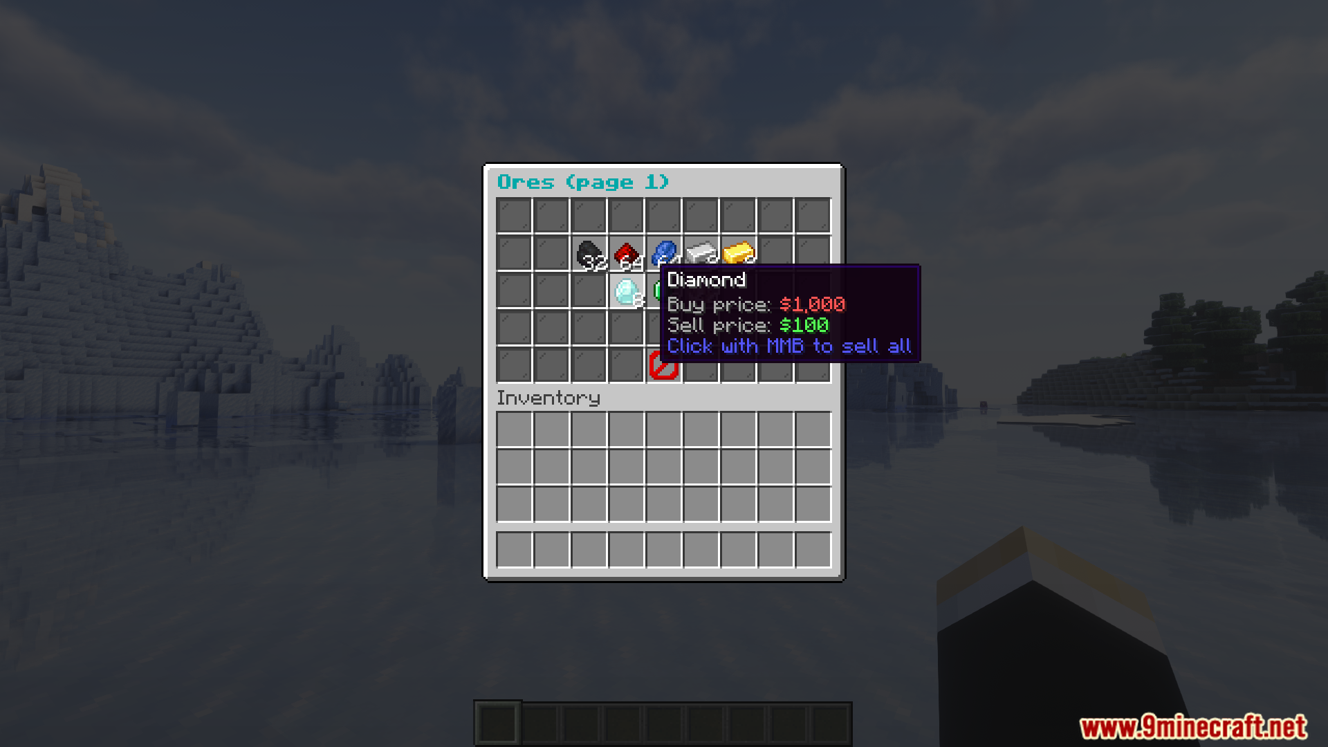 - Enables buying/selling items, enchantments, permissions, and commands via a user-friendly GUI, with options to sell all items at once.