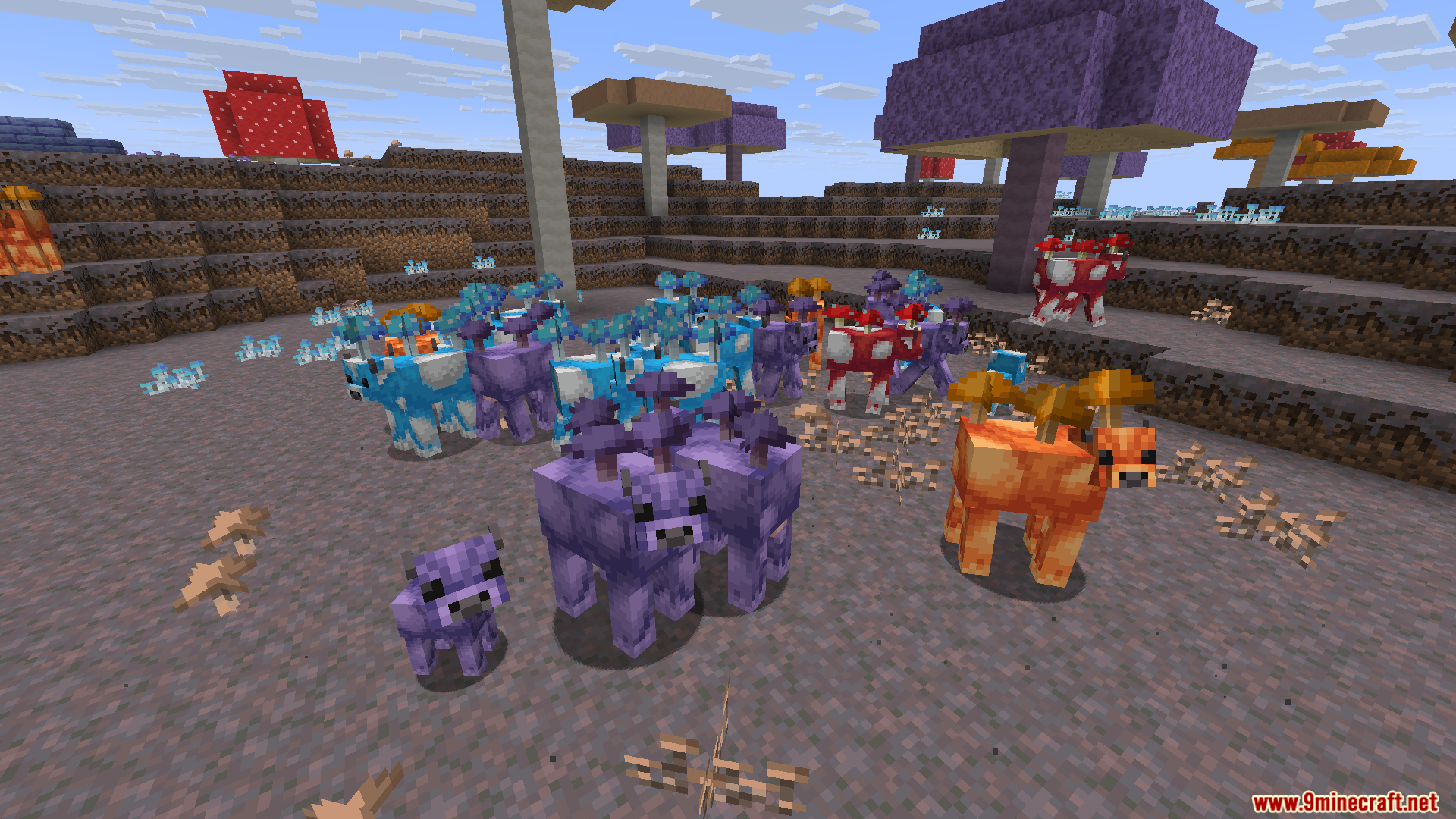 Shroom Craft Mod (1.21.11) expands the fungi ecosystem with new mushroom types, colorful wood sets, adorable mobs like cluckshrooms, and decorative vegetation.