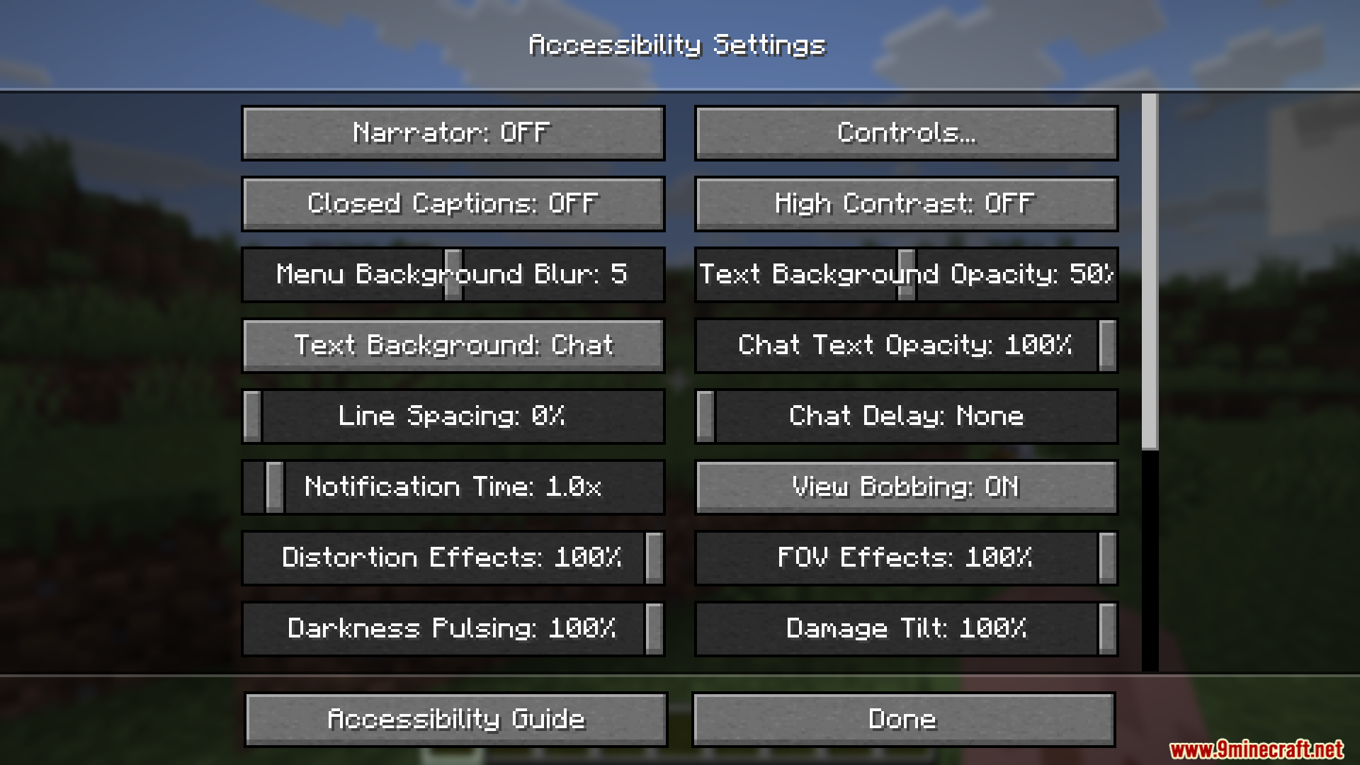 - Disable or hide chat toasts, advancement pop-ups, narrator messages.