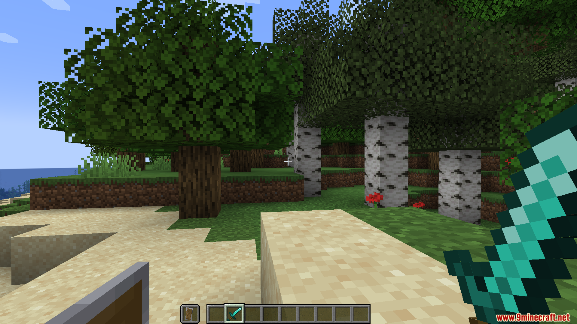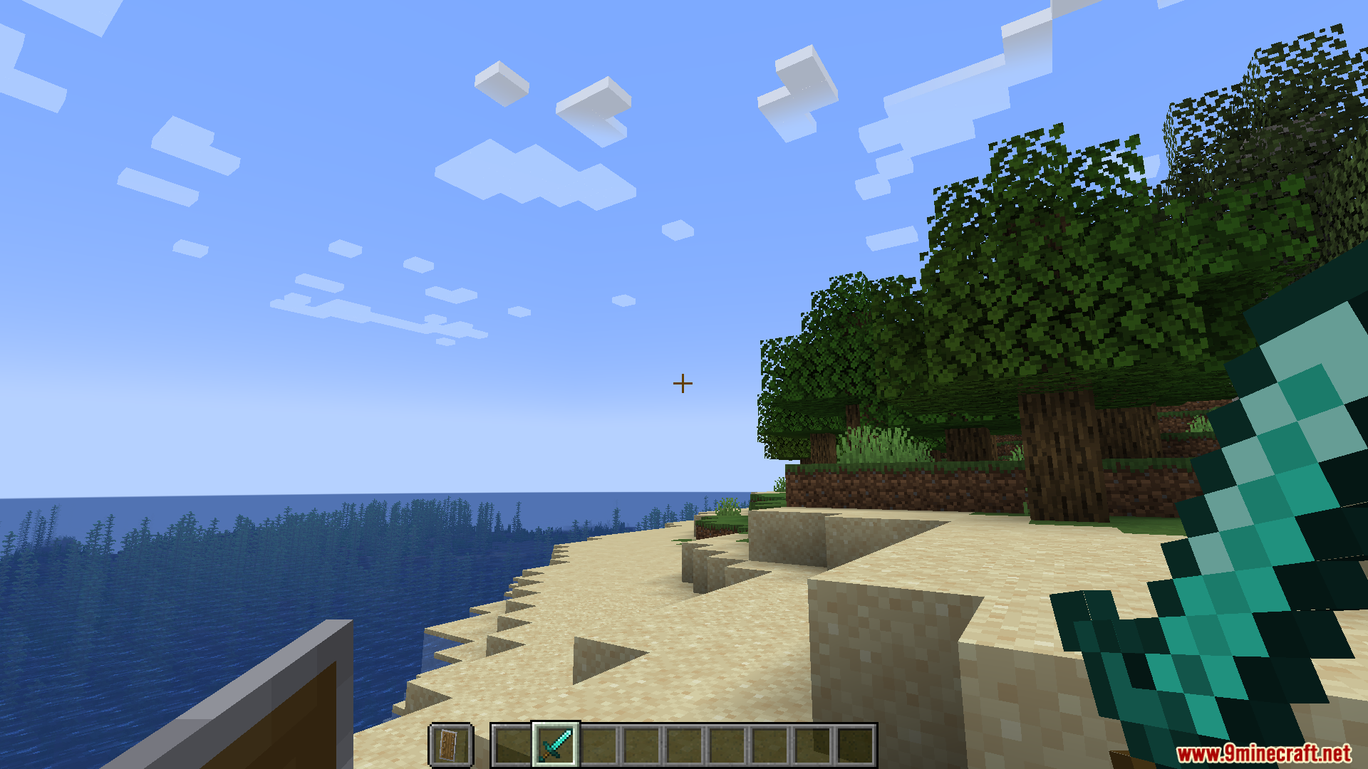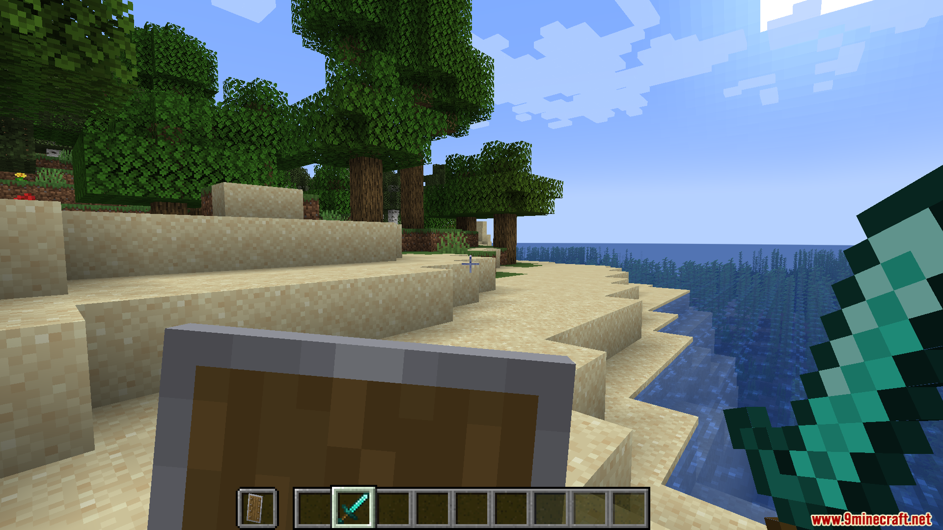 Side Shield Resource Pack (1.21.11, 1.20.1)moves the shield model to the side of your screen instead of blocking the center and makes it smaller for clearer vision.