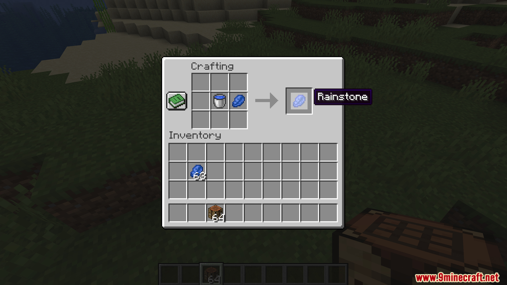 - Rainstone is crafted from Lapis Lazuli and a Water Bucket, and is used to turn rain on or off. When used, Rainstone disappears.