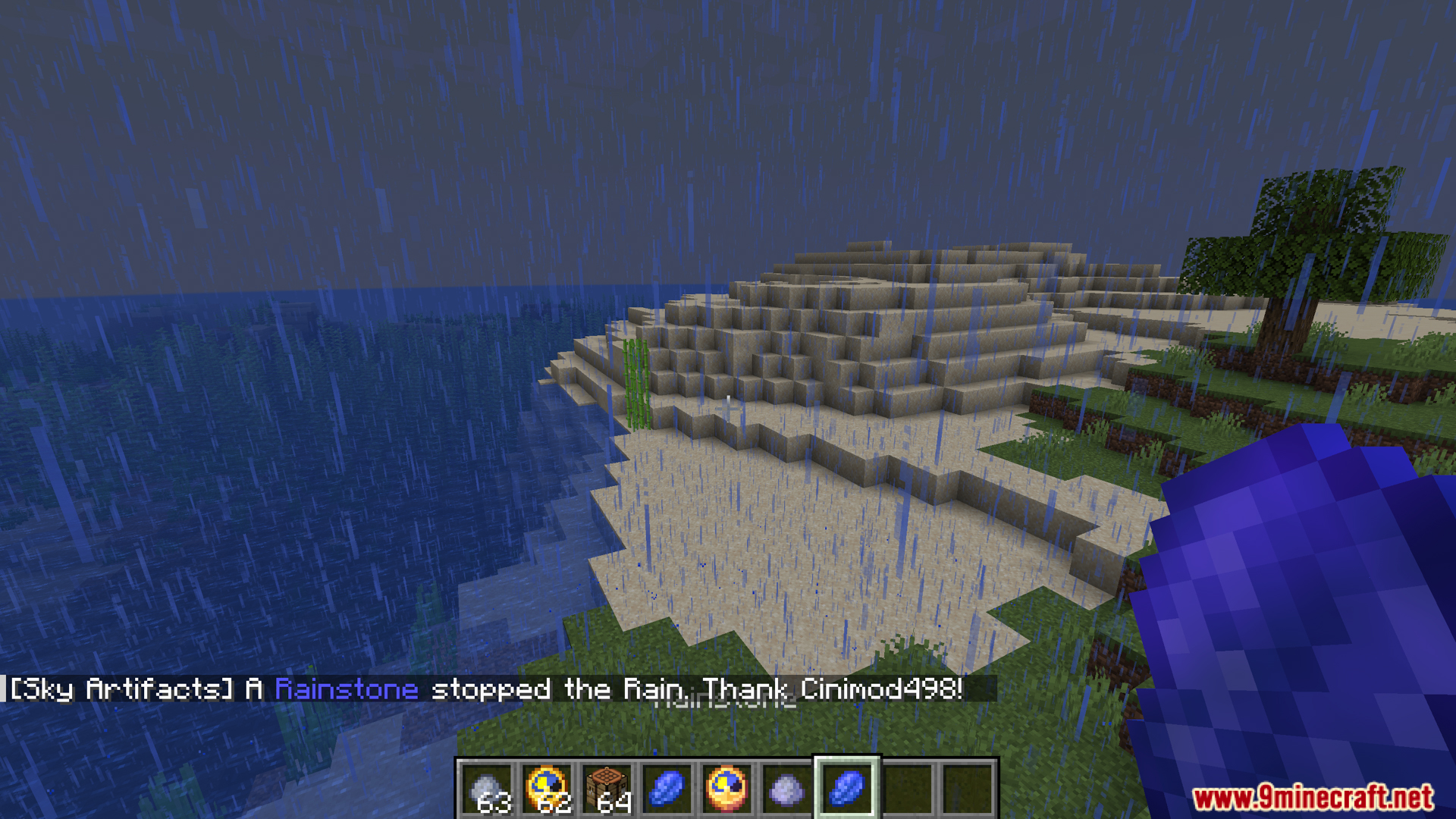 Sky Artifacts Mod (1.21.1, 1.20.6) is a mod that allows players to change the weather and time in Minecraft using powerful “artifacts”. With these items, controlling rain, lightning, or freezing the day-night cycle becomes more feasible and strategic.