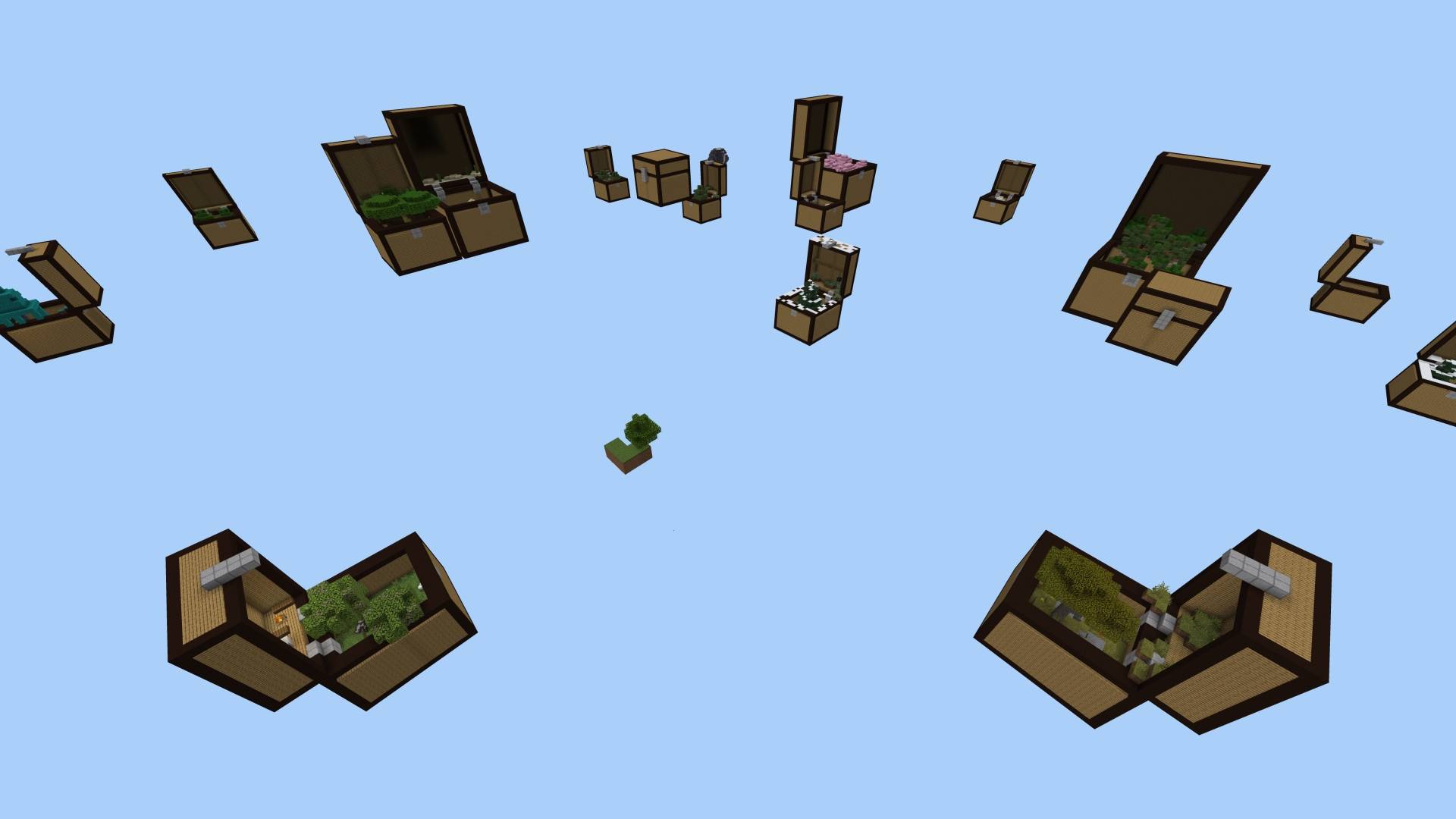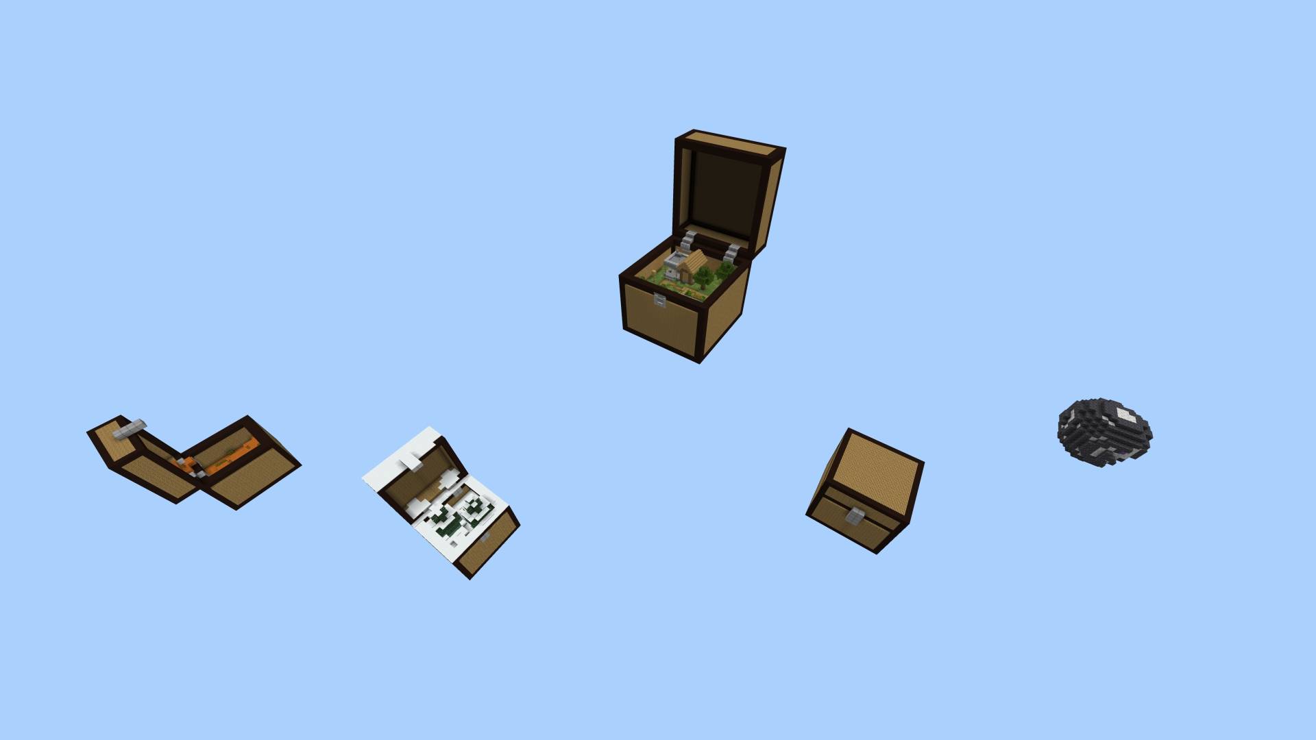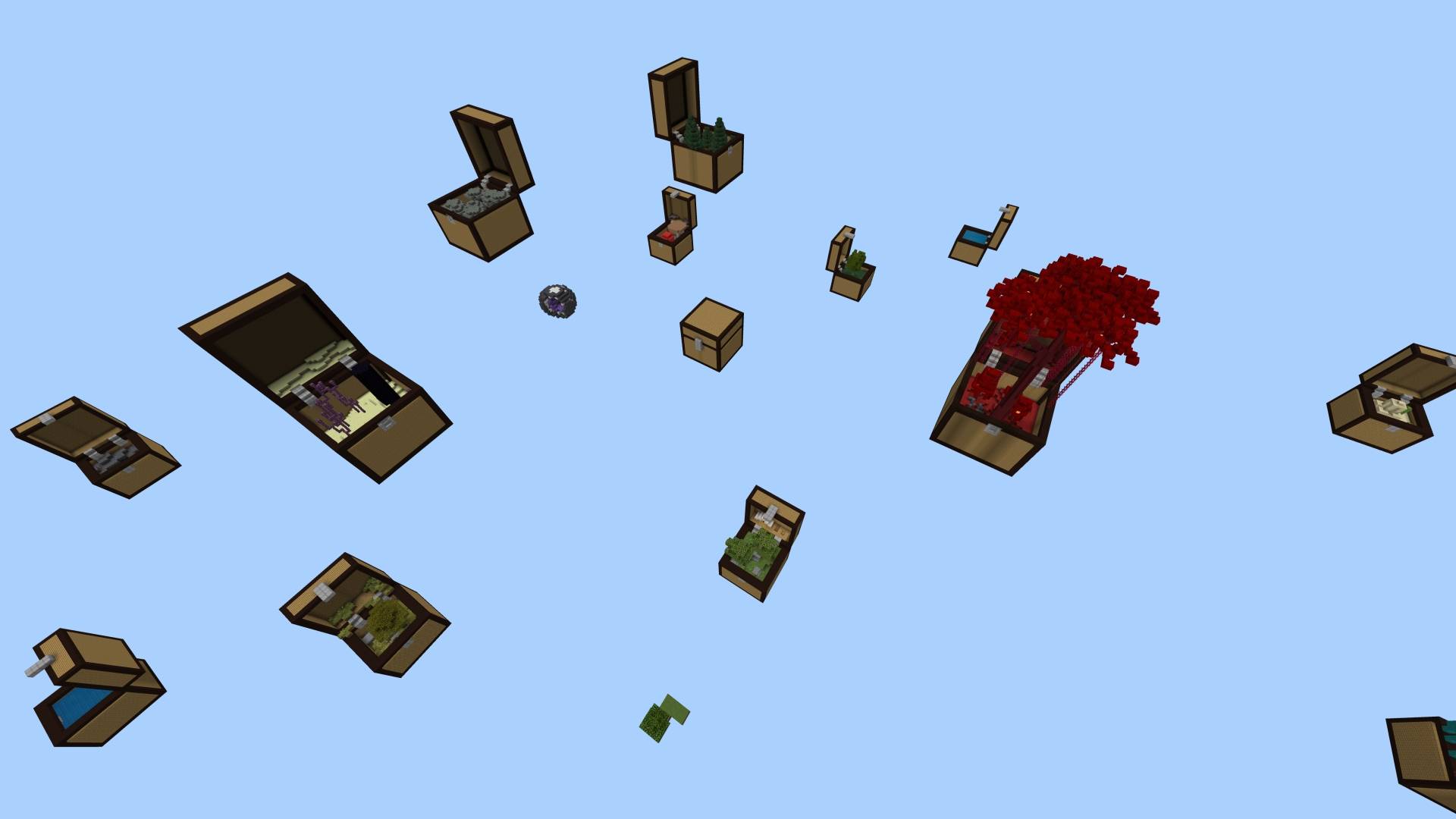 Sky Chest Challenge Map (1.21) is a survival challenge in the sky. This map does not start from an island, but from chests scattered across the sky.