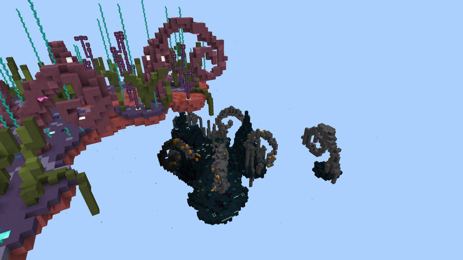 Skyblock Fantasy Map (1.21) has a different style, with islands designed in many themes such as medieval fantasy or movies, with dungeons and many secrets hidden everywhere. The map has more than ten large islands and many small islands, each with important resources. However, the amount of resources is always limited.