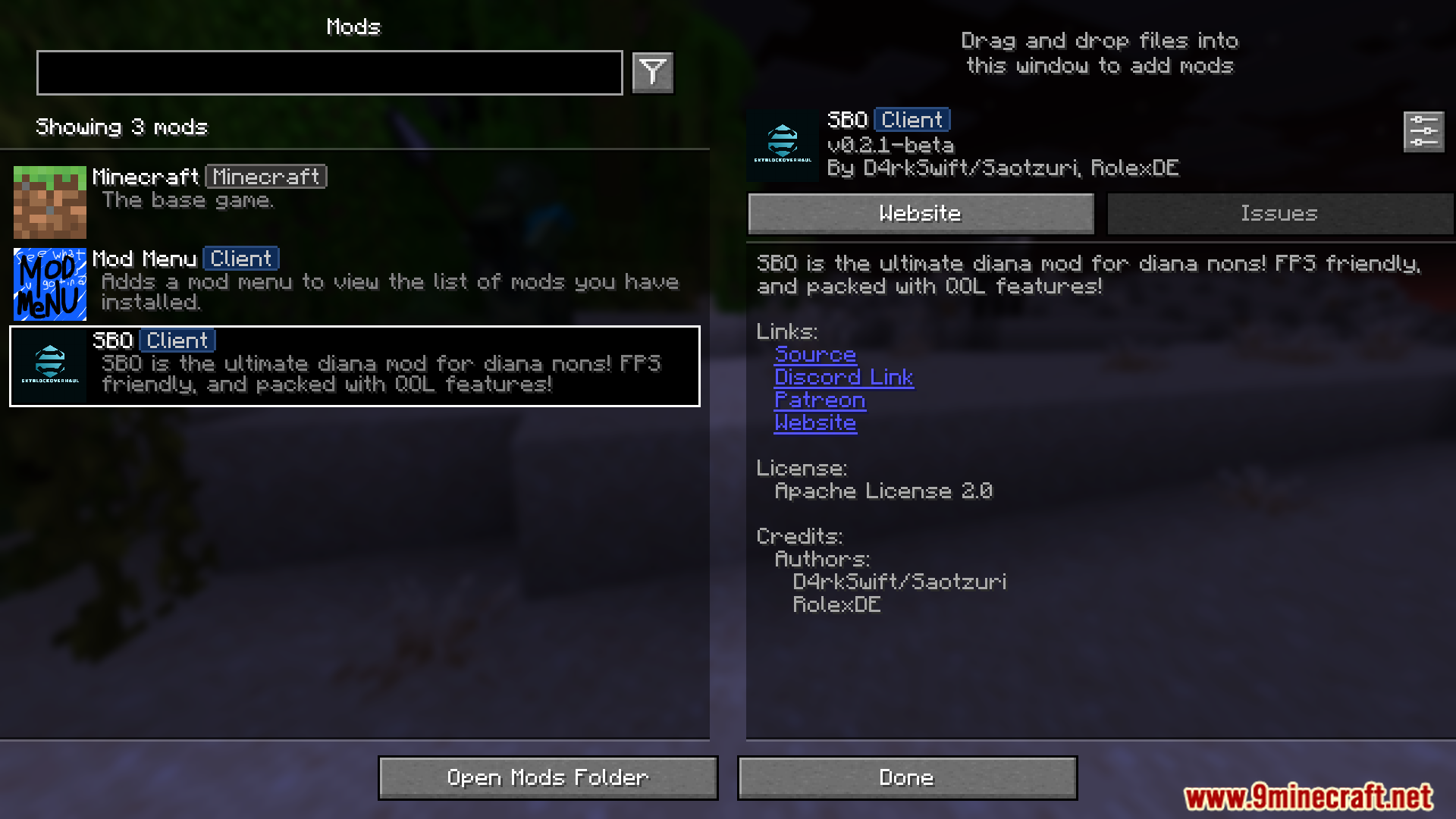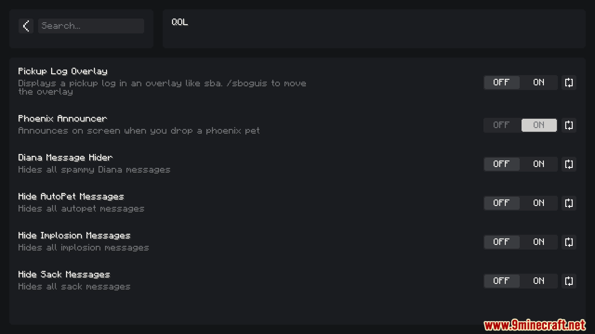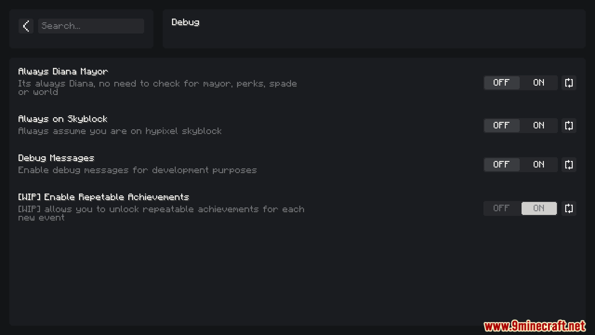 Skyblock Overhaul Mod primarily focused on the Diana event. It adds advanced burrow detection, warp tools, loot trackers, customizable waypoints, and party management features to streamline gameplay during Mythological Rituals.