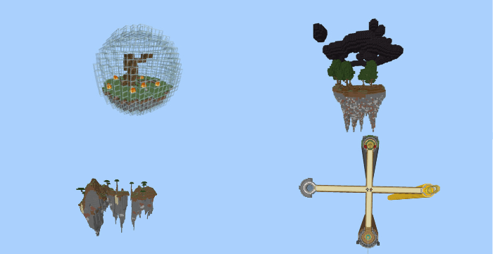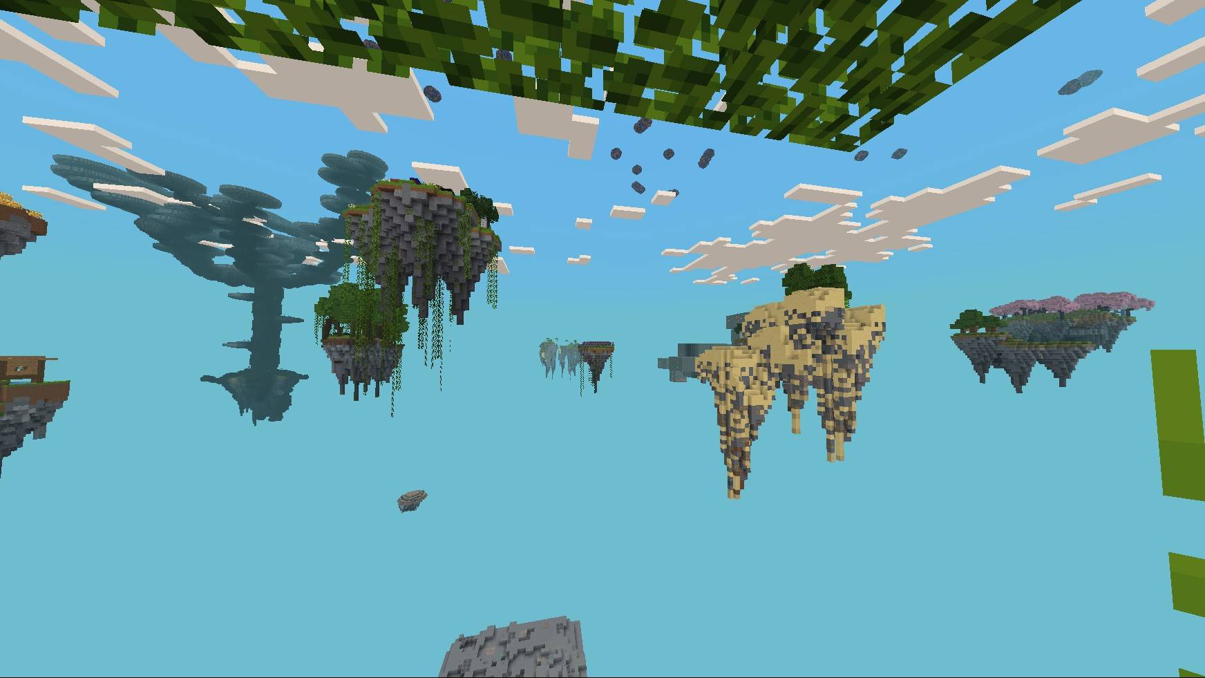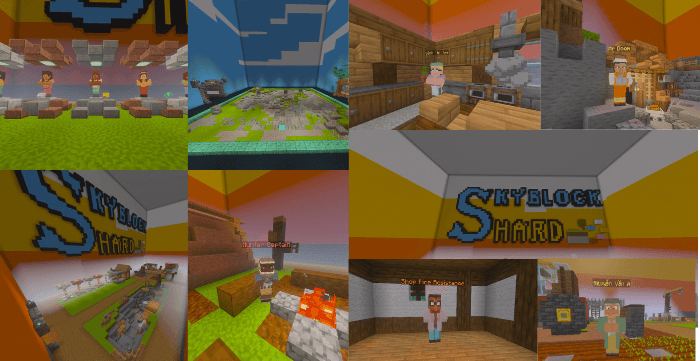 SkyBlock Shard Map (1.21) is a map consisting of 55 floating islands. The journey revolves around exploration and survival and boss fights. Collect resources, craft legendary equipment and build cities.
