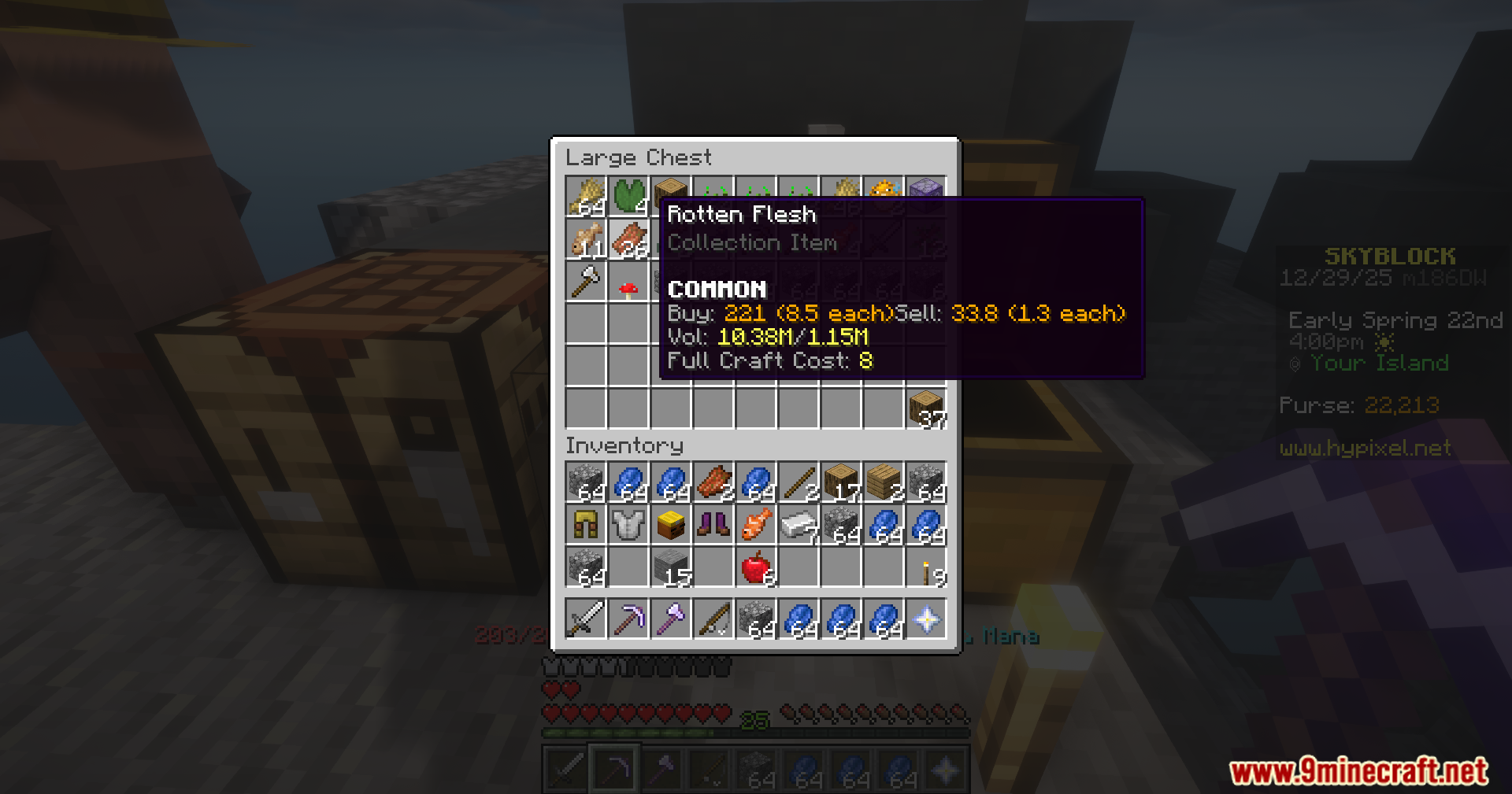 - Auction House price data including lowest BIN, median price, and daily volume.