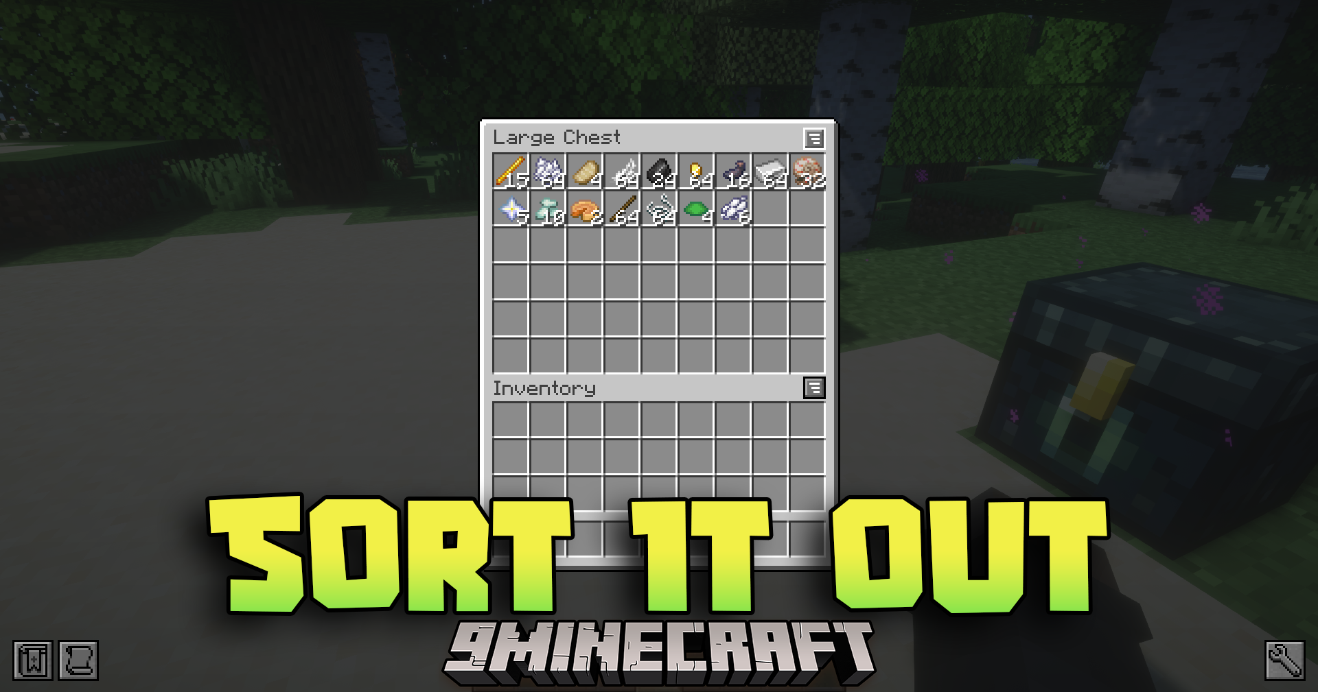 - Allows sorting via double-clicking a slot, using a sort button, or pressing a keybind