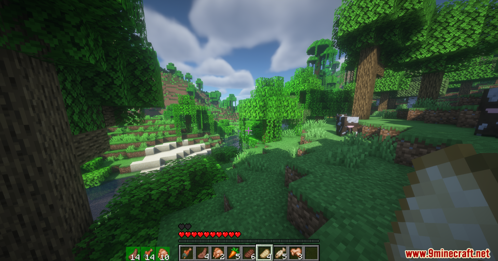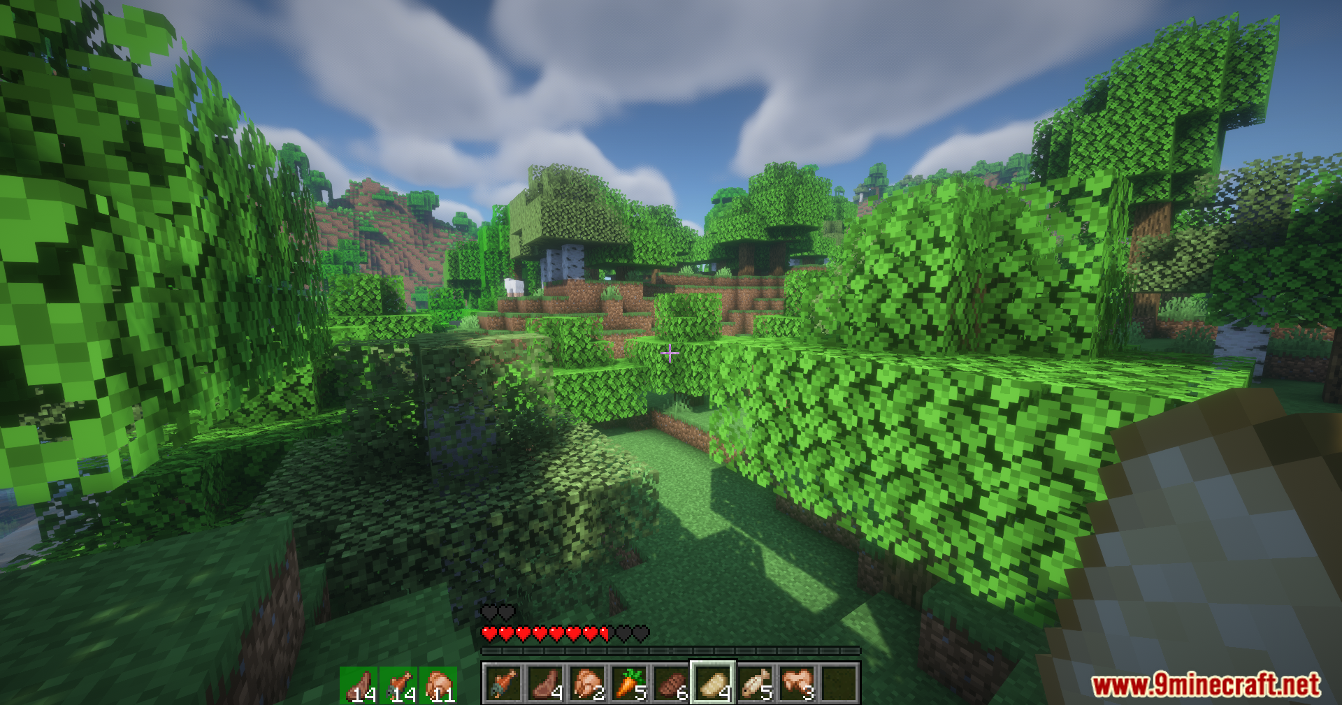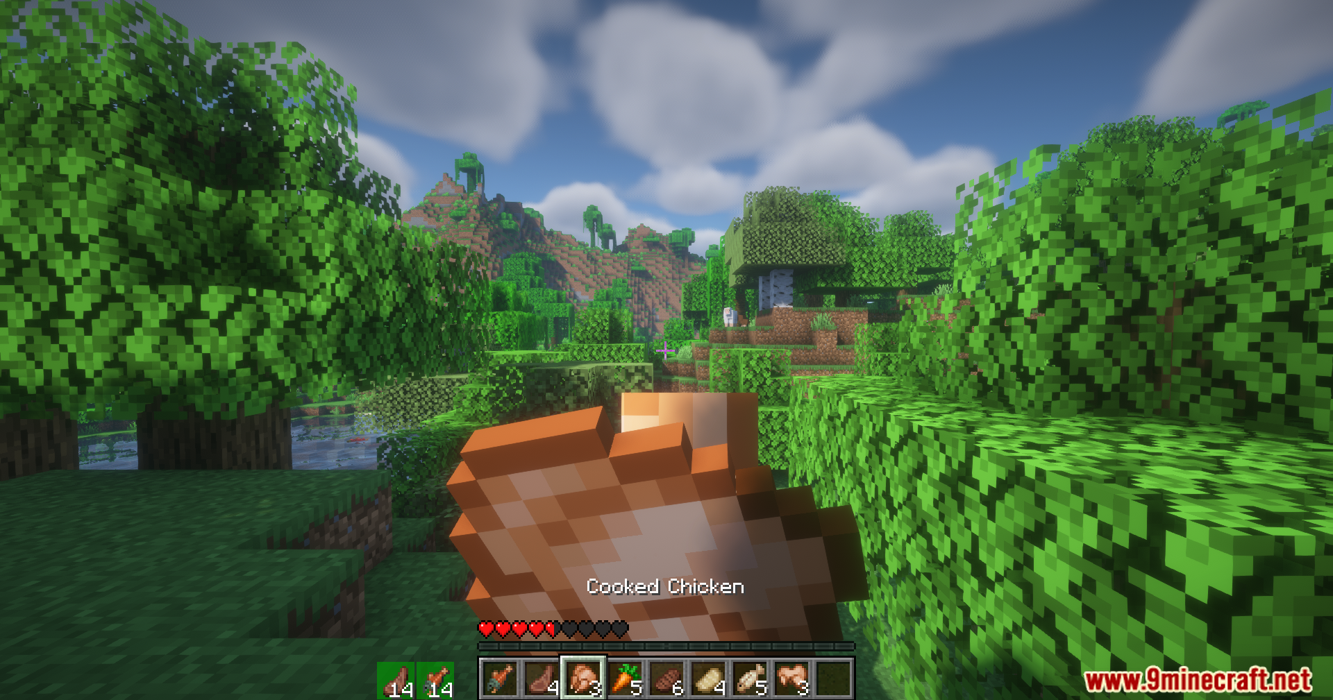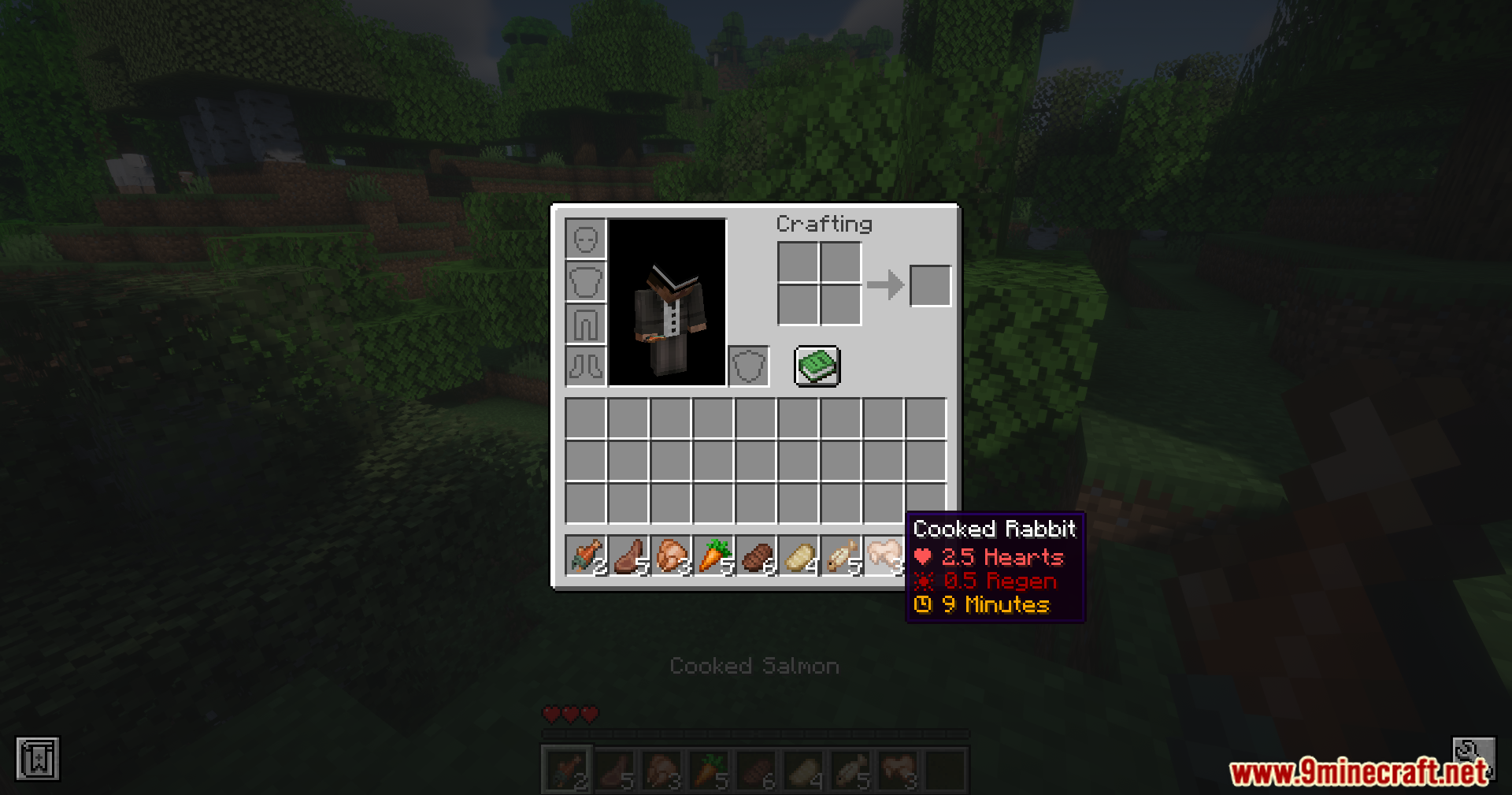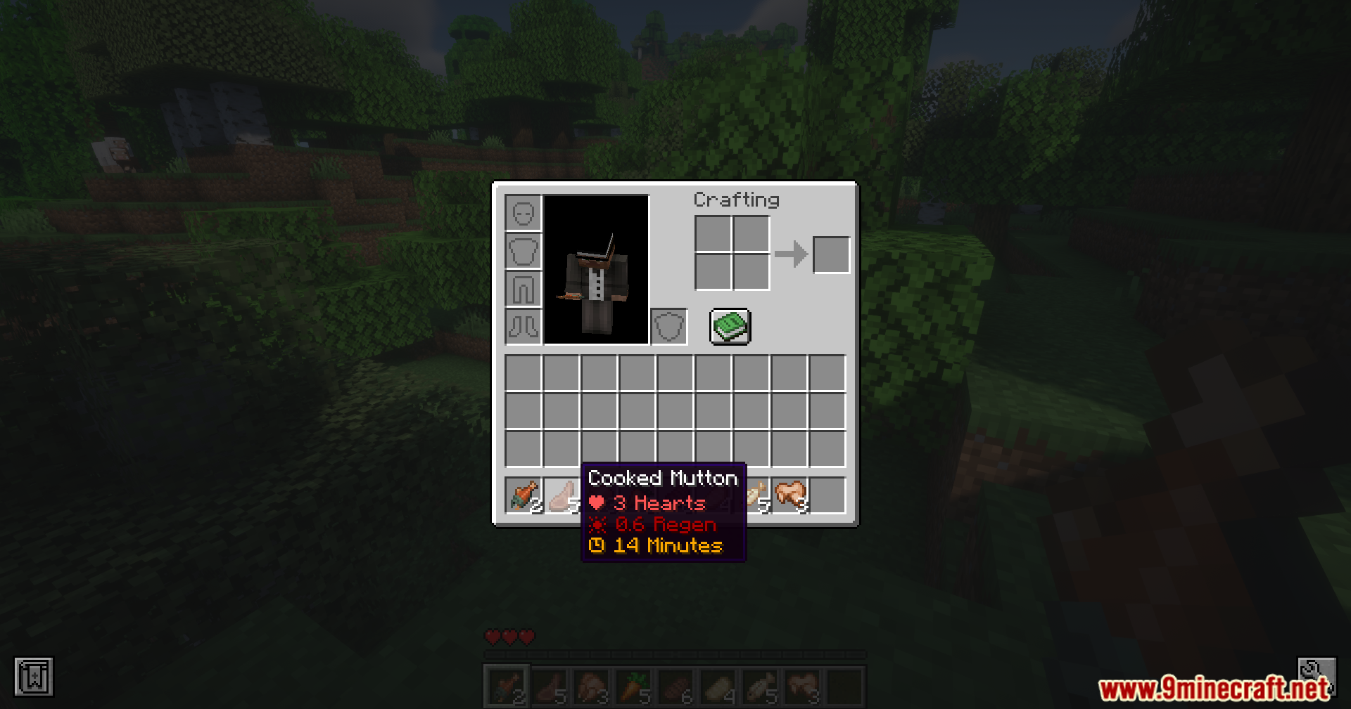 - Start with three hearts (configurable) and increase your maximum health by eating quality foods.