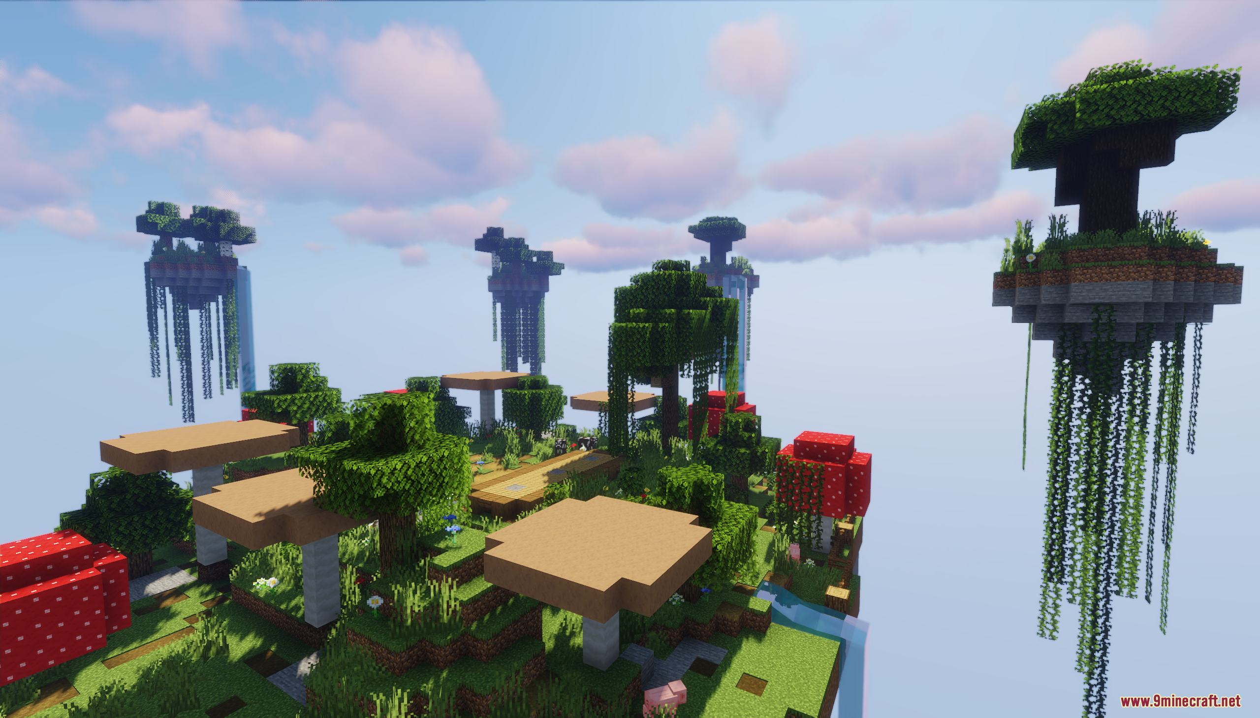 Summer Lobby Island Map (1.21.11, 1.20.1) is a cheerful and vibrant floating hub designed to bring warm summer energy into any server. Lush greenery, towering mushrooms, colorful flowers, and shaded pathways create a welcoming atmosphere perfect for player gathering areas, spawn points, or seasonal events. Whether used as a lobby, a community hangout, or a decorative showcase, this map delivers a refreshing, nature‑filled escape high above the void.
