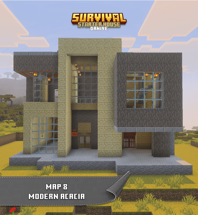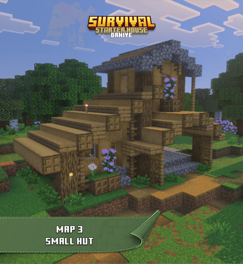 Survival Starter House Map (1.21) offers pre-built starter houses. Each house comes in Survival mode with achievements enabled, and all stats and progress are reset to make it feel like you’re starting a whole new world.