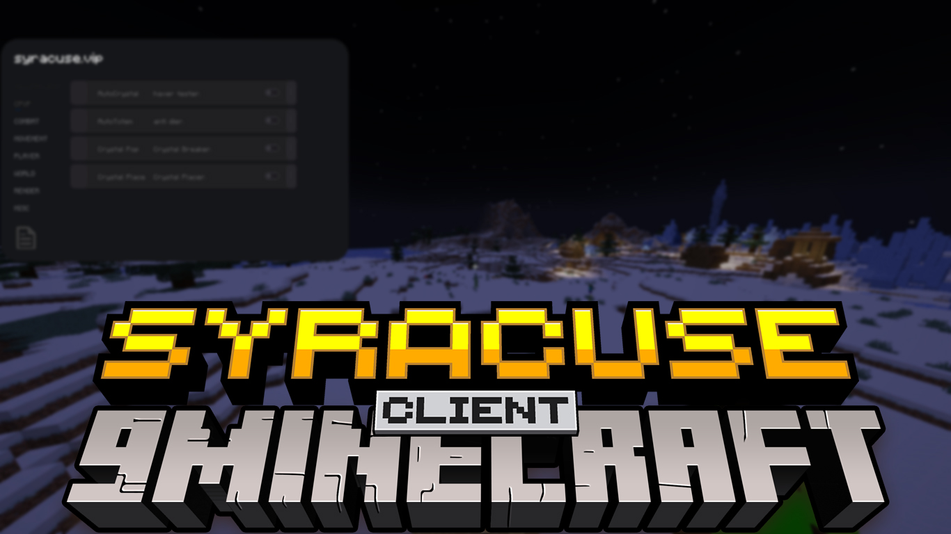 Syracuse Client Mod (1.19.4) is a private Crystal PvP client for Minecraft. It focuses on improving Crystal PvP combat with automation modules and a modern interface.