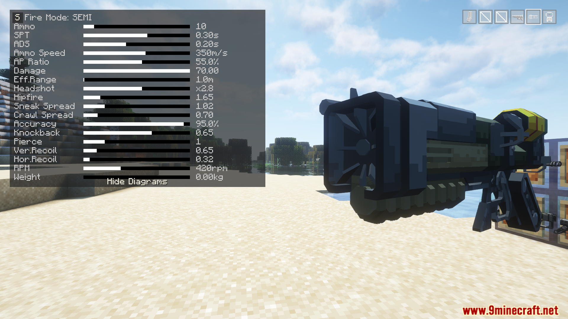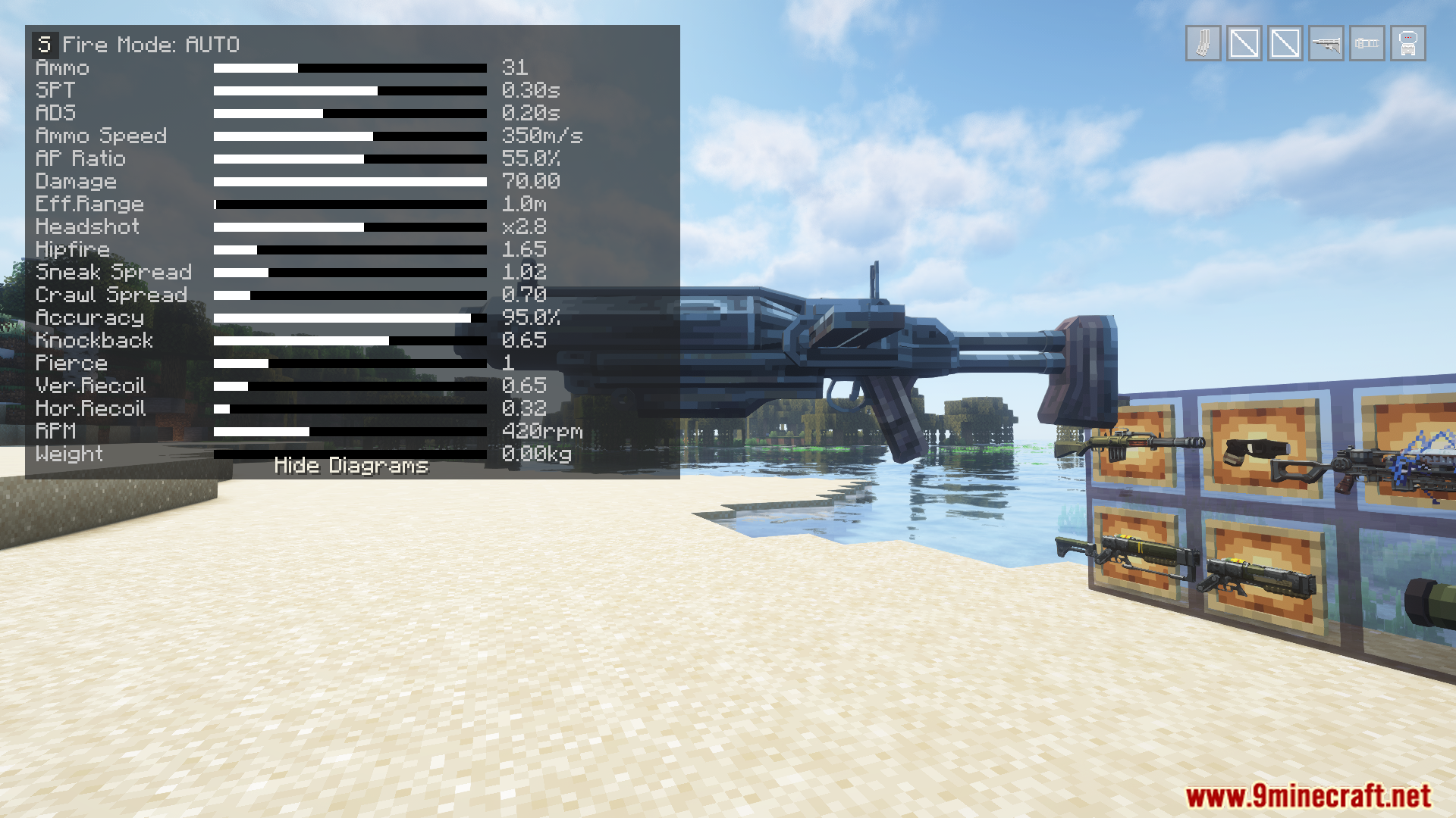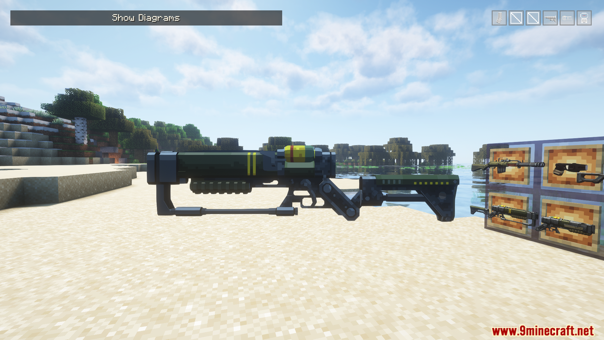 - Adds a variety of Fallout 4-inspired firearms, including detailed models and animations, alongside colorful, unique weapons for added flair.
