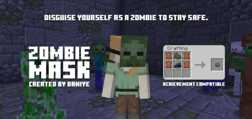 Zombie Mask Addon (1.21) allows you to craft a mask to disguise yourself as a zombie. When wearing this item, most monsters will ignore you and won’t attack unless attacked…