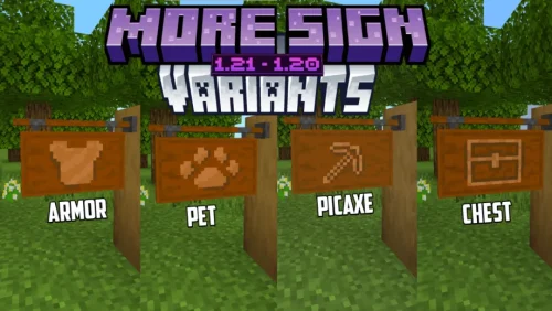 More Sign Variants Addon (1.21, 1.20) adds many types of signs with specific illustrations instead of just text like the original version. Players can use these signs to mark the…