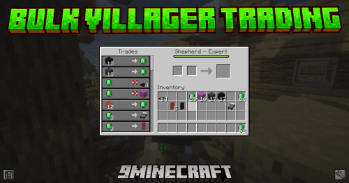 Bulk Villager Trading Mod (1.20.6, 1.20.1) improves trading efficiency by automatically restocking the villager trade interface after a shift-click trade. It allows players to complete multiple trades quickly without manually…